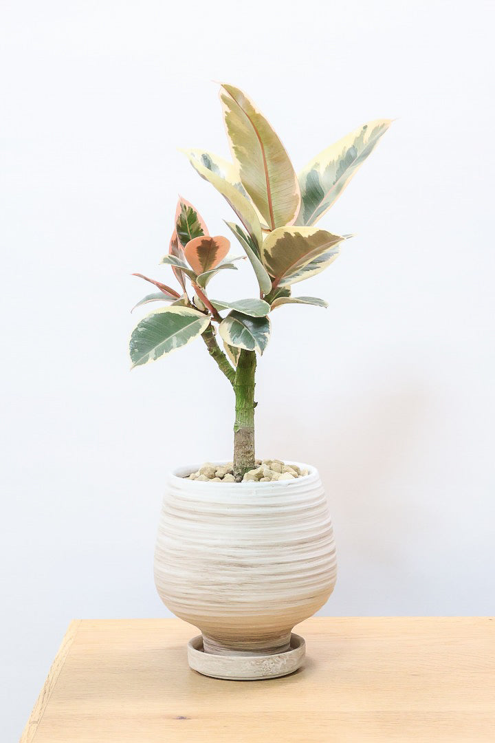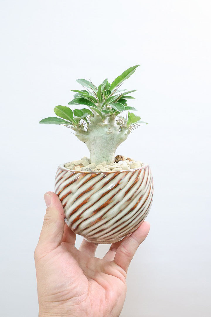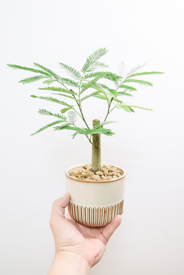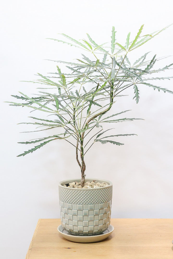 陶器鉢は割れないようにエアパッキンで包みます。枝葉が傷つかないようにクラフト紙などで優しく包み、専用の宅配BOXに入れてお届けします。