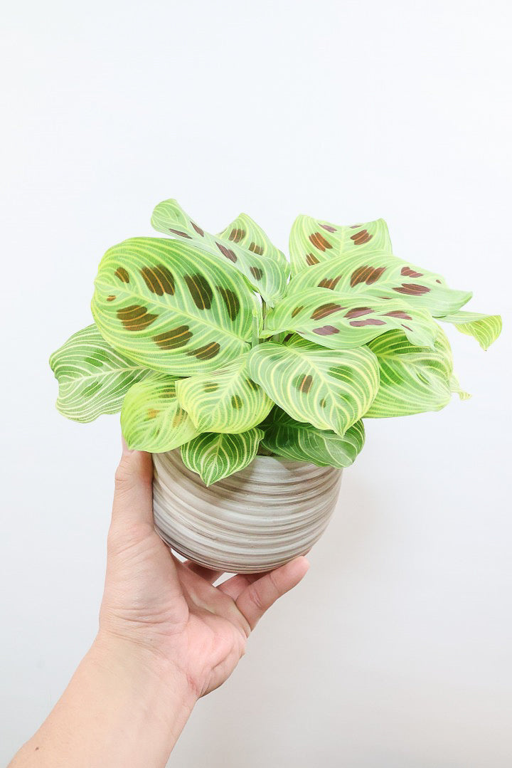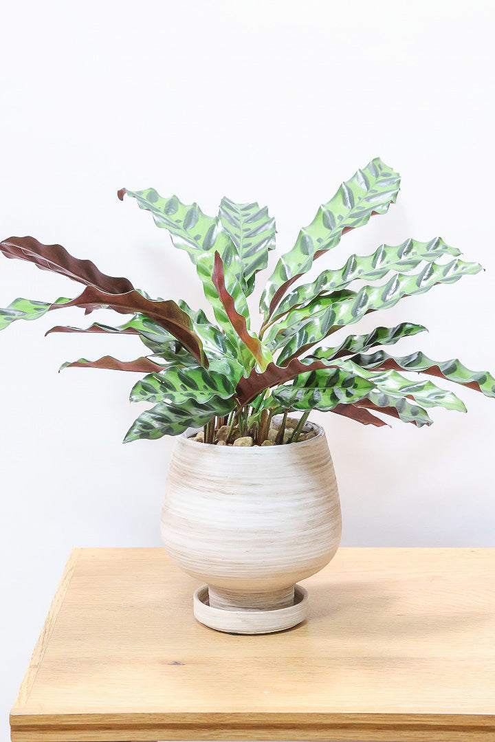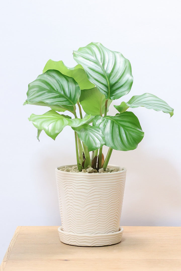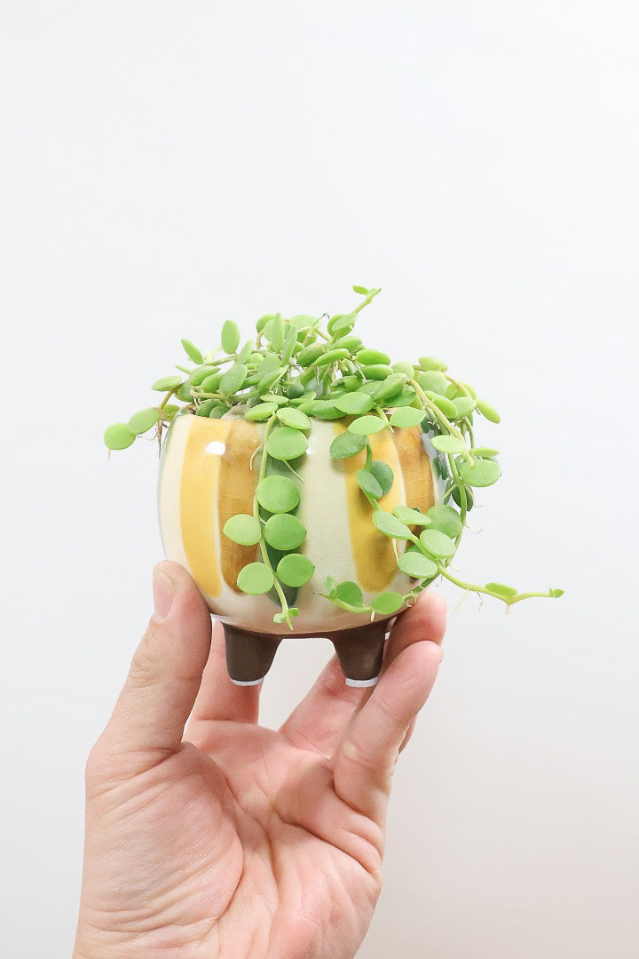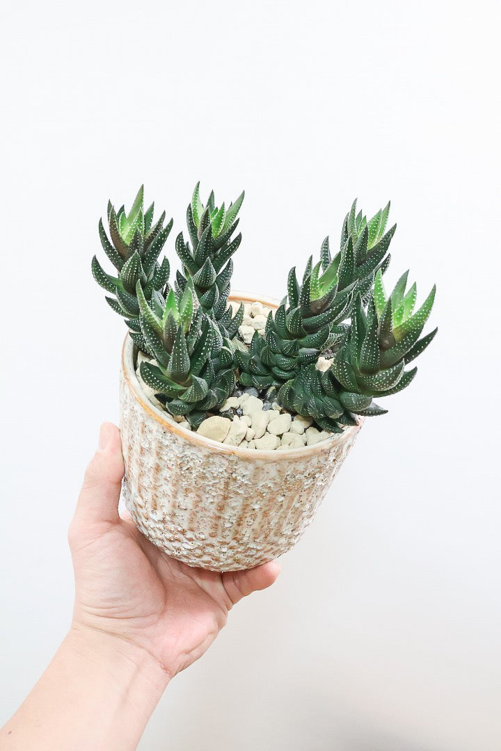 陶器鉢は割れないようにエアパッキンで包みます。枝葉が傷つかないようにクラフト紙などで優しく包み、専用の宅配BOXに入れてお届けします。