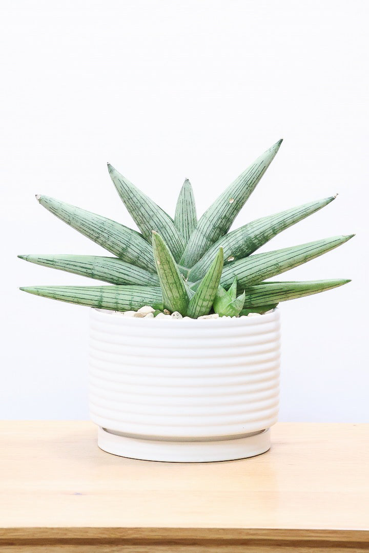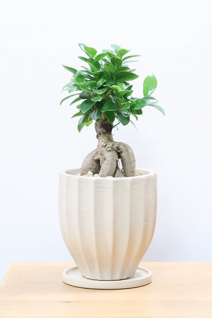 陶器鉢は割れないようにエアパッキンで包みます。枝葉が傷つかないようにクラフト紙などで優しく包み、専用の宅配BOXに入れてお届けします。