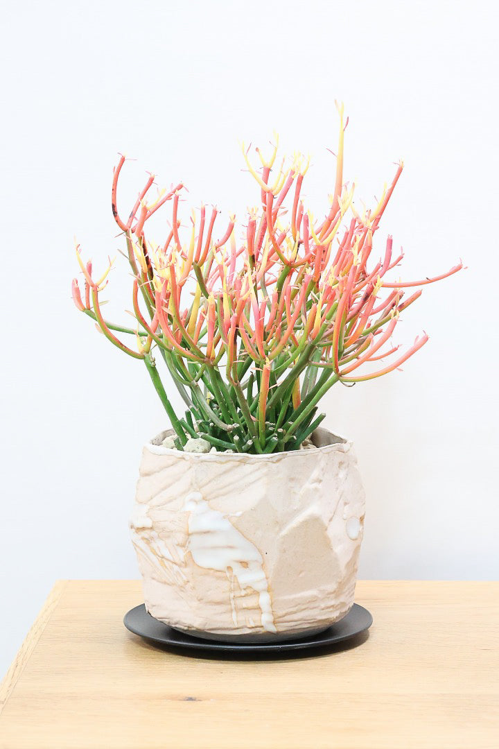 サボテンに似たトゲのある種類や、丸い球体の種類などさまざまな形状がある「ユーフォルビア」も多肉植物の一種です。ユニークな見た目は人気が高く、プレゼントとしても喜ばれるでしょう。