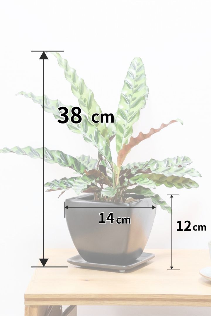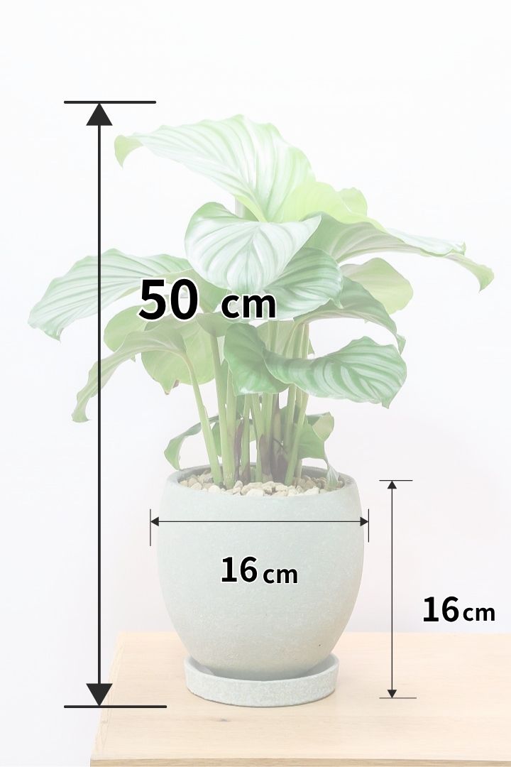 カラテアは熱帯アメリカを原産地とする観葉植物です。特徴的なのが、葉っぱに浮かぶ美しい模様。矢羽根をイメージさせる個性的な柄に、緑の濃淡がアクセントとなりラテン的でエキゾチックな雰囲気を感じさせてくれます。