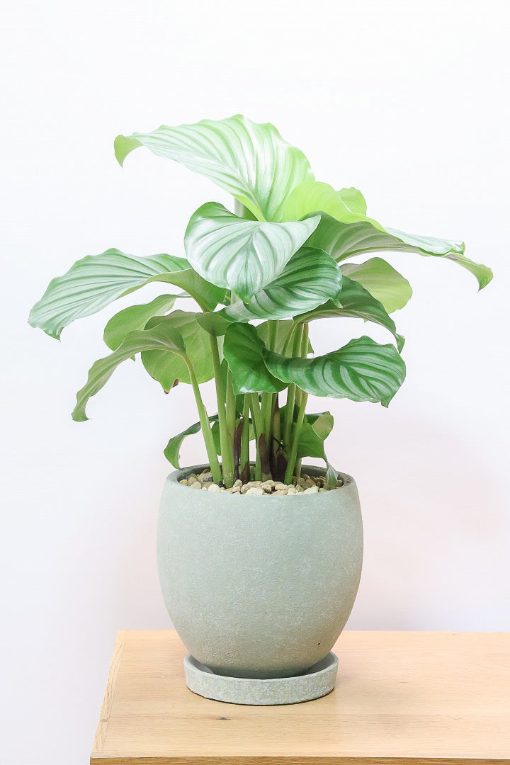 カラテアは熱帯アメリカ原産の観葉植物で、個性ある矢羽根柄の模様が特徴です。花言葉は3つ付けられており、「飛躍」「強い思い」「あたたかい心」とどれもポジティブなイメージを連想させるものばかり。そのため、自分で購入するのはもちろんプレゼントの贈り物に選ぶのもおすすめでしょう。APEGOでは、インテリアやプレゼントにぴったりの観葉植物を多数取り揃えています。商品はすべて写真現物の一点ものなので、気に入った見た目の植物をお手元まで直接お届けします。