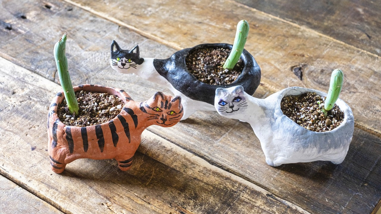 セメントは無機質な印象ですが、落ち着いたクールな雰囲気を演出してくれます。多肉植物やサボテンなどと相性が良く、水が染み込みやすく乾きやすい点もメリットでしょう。やや強度に劣り、角部分が欠けてしまうことがあるため取り扱いに注意が必要です。