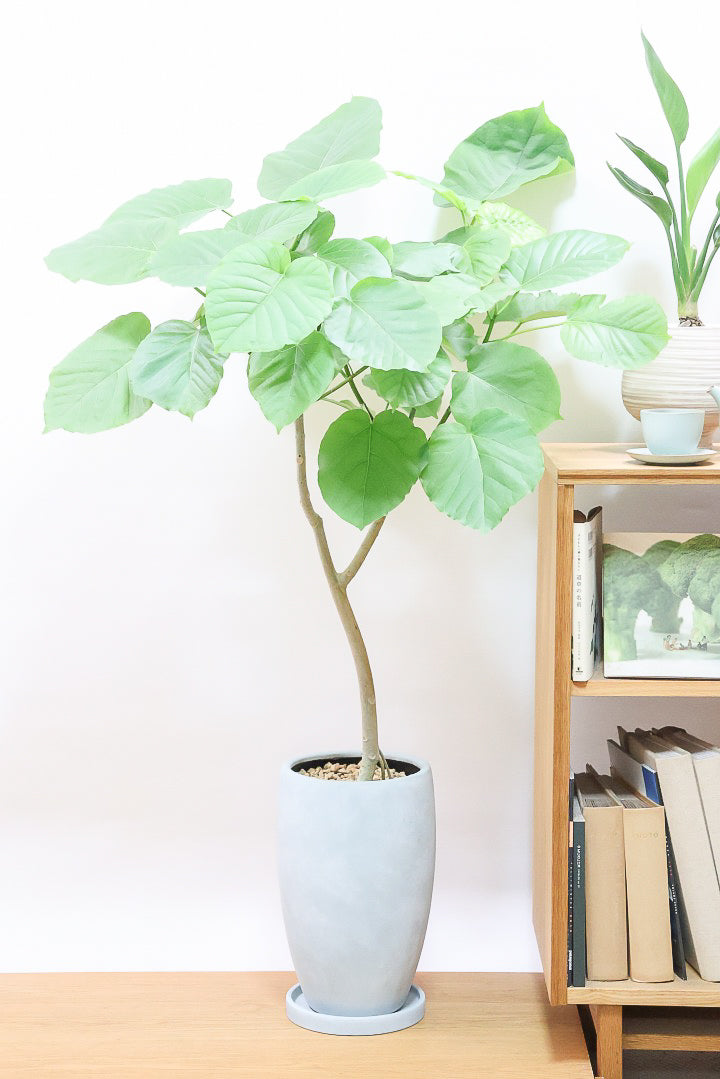 ウンベラータは大きなハート形の葉っぱが特徴で、個性的な曲がり方をする枝の樹形も人気を集めています。見た目にもおしゃれで初心者でも育てやすいことから、定番の観葉植物として大人気です。