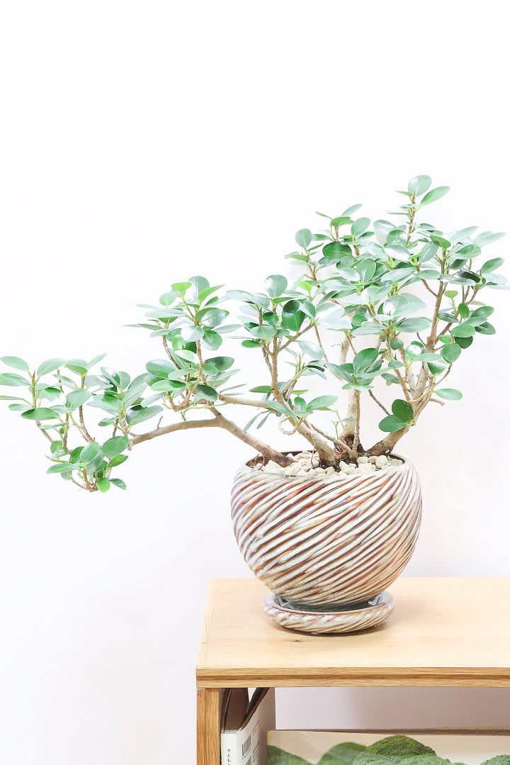 ウンベラータは可愛らしいハート型の葉っぱと、個性的な枝の曲がり具合が特徴です。初心者でも育てやすく、見た目のインテリア性も高いことから、定番の観葉植物として人気を集めています。APEGOの商品は、すべて写真現物の一点ものです。大人気のウンベラータもサイズや樹形など、1つ1つ個性があるため、お気に入りの株をじっくりお選びください。