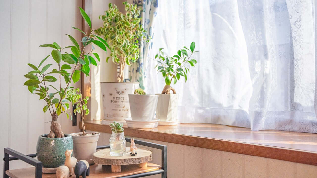 スペースが限られているなら、中サイズや小サイズのインテリアグリーンを選んでみましょう。出窓や家具の上に置くなど、飾り方にバリエーションが生まれます。多肉植物や中サイズのカラテア、ガジュマルなども人気です。