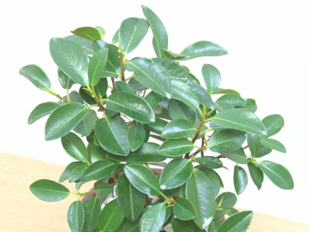 フィカス・ベンジャミンは小さく丸い葉が密集した姿がおなじみの定番種です。「ベンジャミン」の名でも広く知られた品種ですが、ゴムの木の種類だとは意外と知られていません。