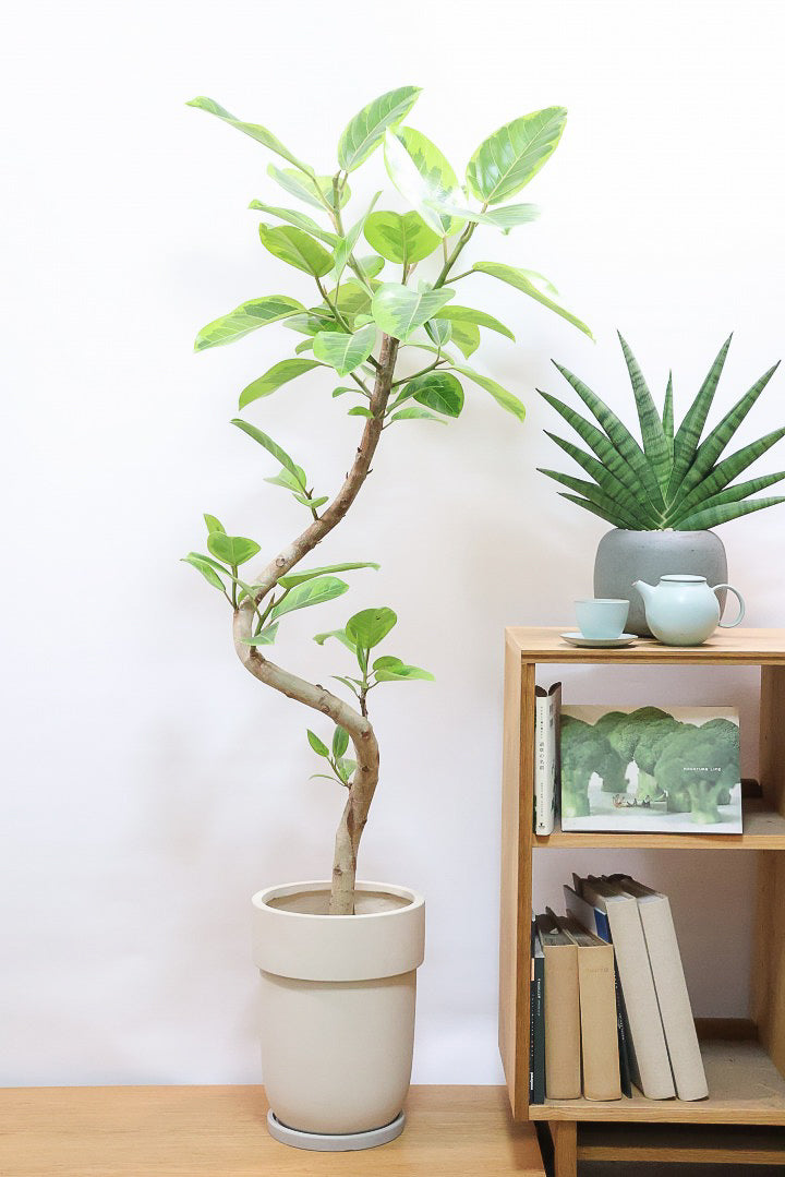 フィカス・ベンジャミナ、ベンジャミンゴムともよばれ、人気のある観葉植物です。ホルムアルデヒド・キシレン・トルエン・アンモニアなどの除去実験では、高い空気清浄作用を持つことが示されました。