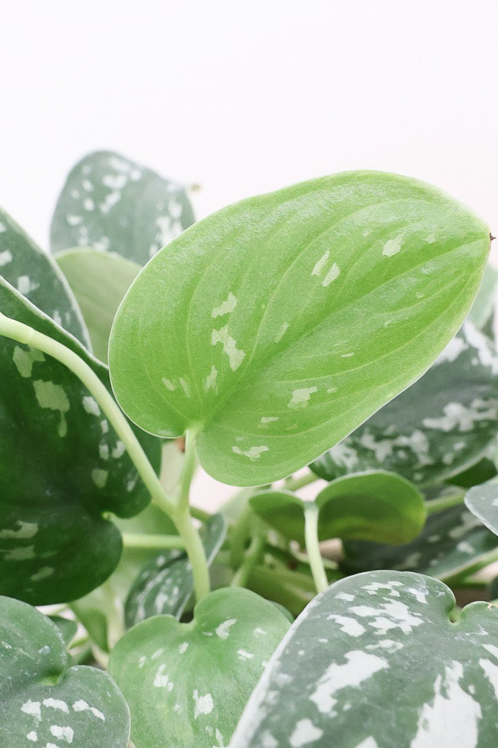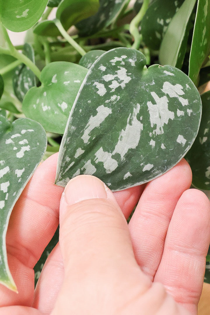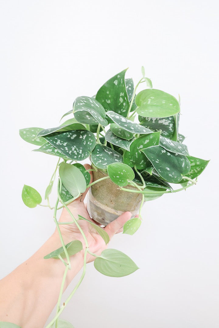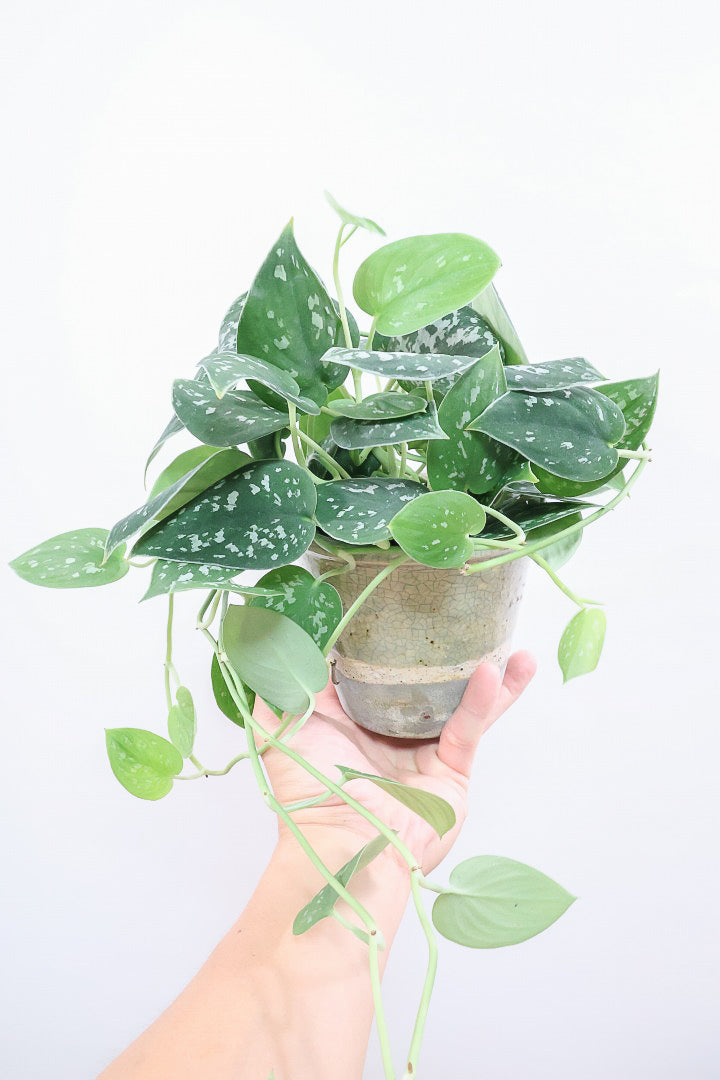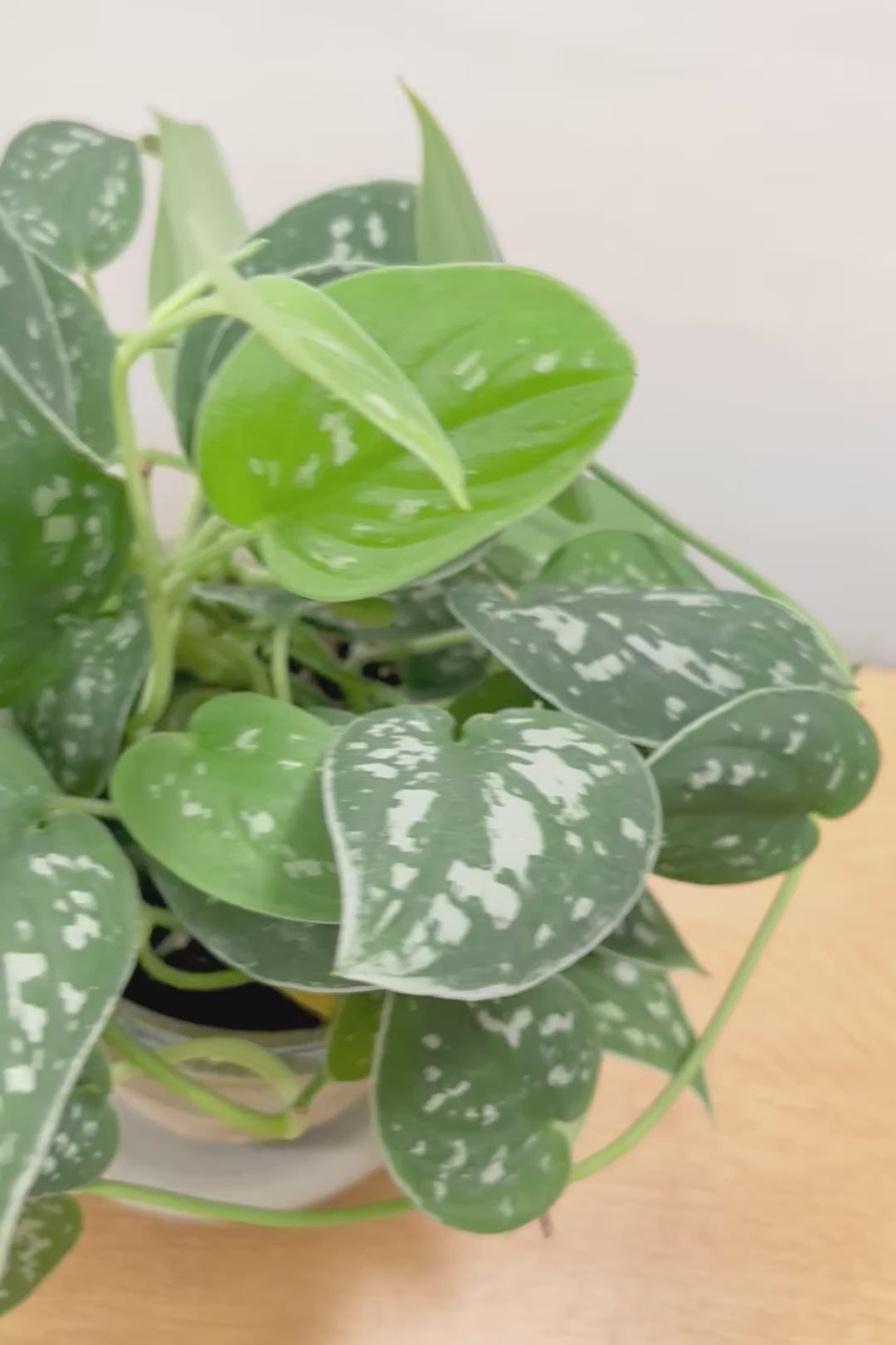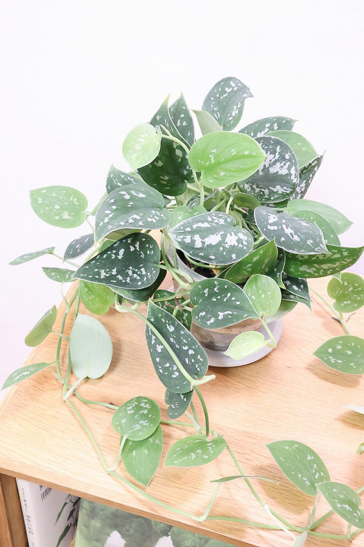 葉の表面の質感がしっとりとしていてかわいい葉のスキンダプサス♪葉っぱの模様もキュート♪ツル状にどんどん新芽を出して生長しますので、生長の過程が楽しめるスキンダプサス。お部屋のインテリアとしてぴったりの植物です。