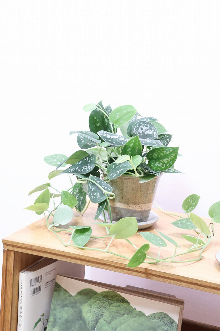 今回入荷のスキンダプサスは小さめの葉が特徴の徴のアルギレウス。グリーン&シルバーの葉色が素敵な人気種です。