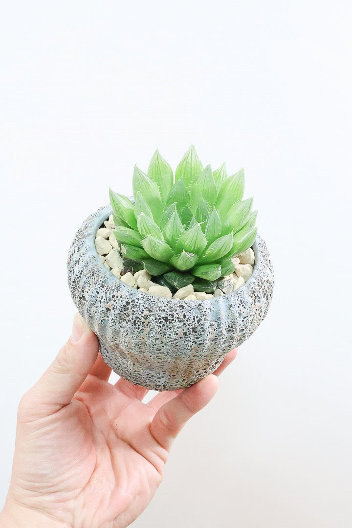 テーブルやデスクの上など、仕事中や家事中の癒しとして寄り添うミニサイズの観葉植物です。