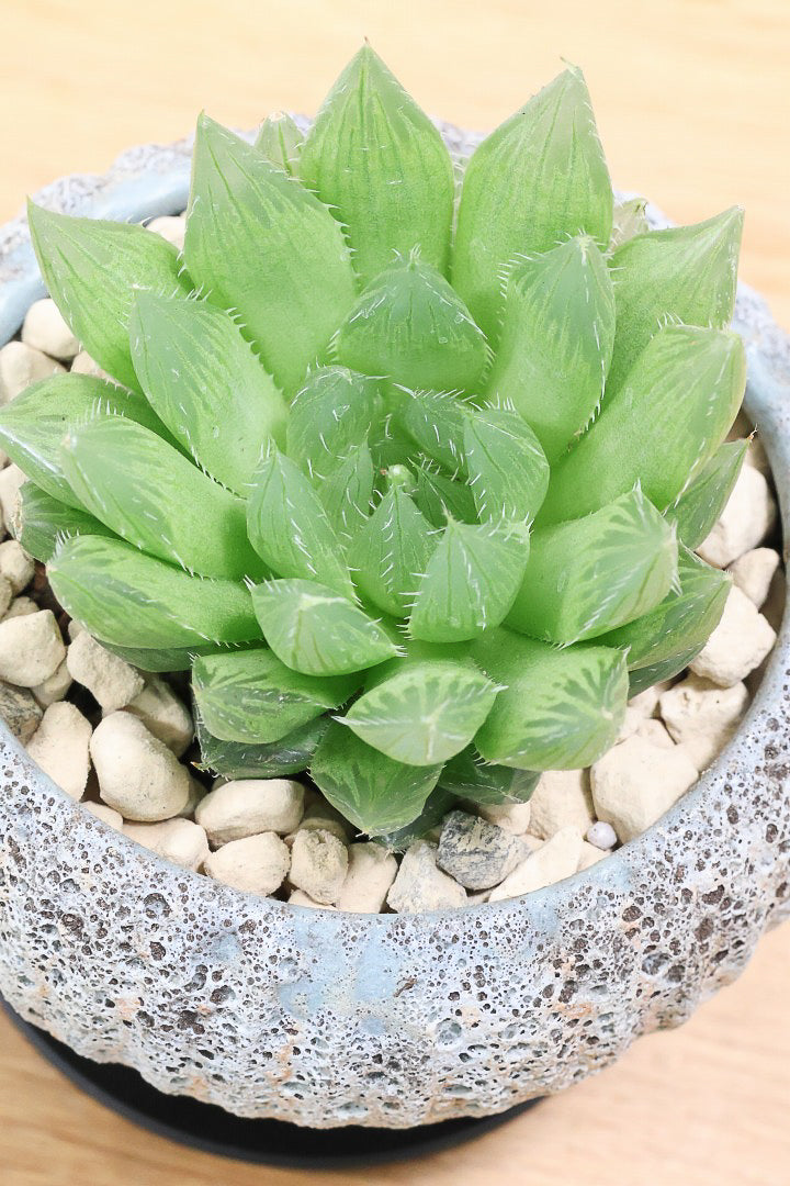 今回入荷のハオルチア 青雲の舞はシャープなフォルムと透き通るような透明感のある葉っぱが特徴が素敵なハオルチアです。生長がとてもゆっくりな子なのでかなり時間と手間がかかっている良いハオルチアだと思います!