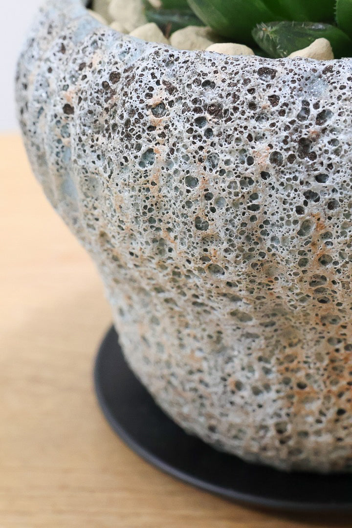 ゴツゴツした質感の陶器POTです。※自然の風合いを大切にするため、色ムラや歪み、欠けなどが多少あります。ご了承ください。