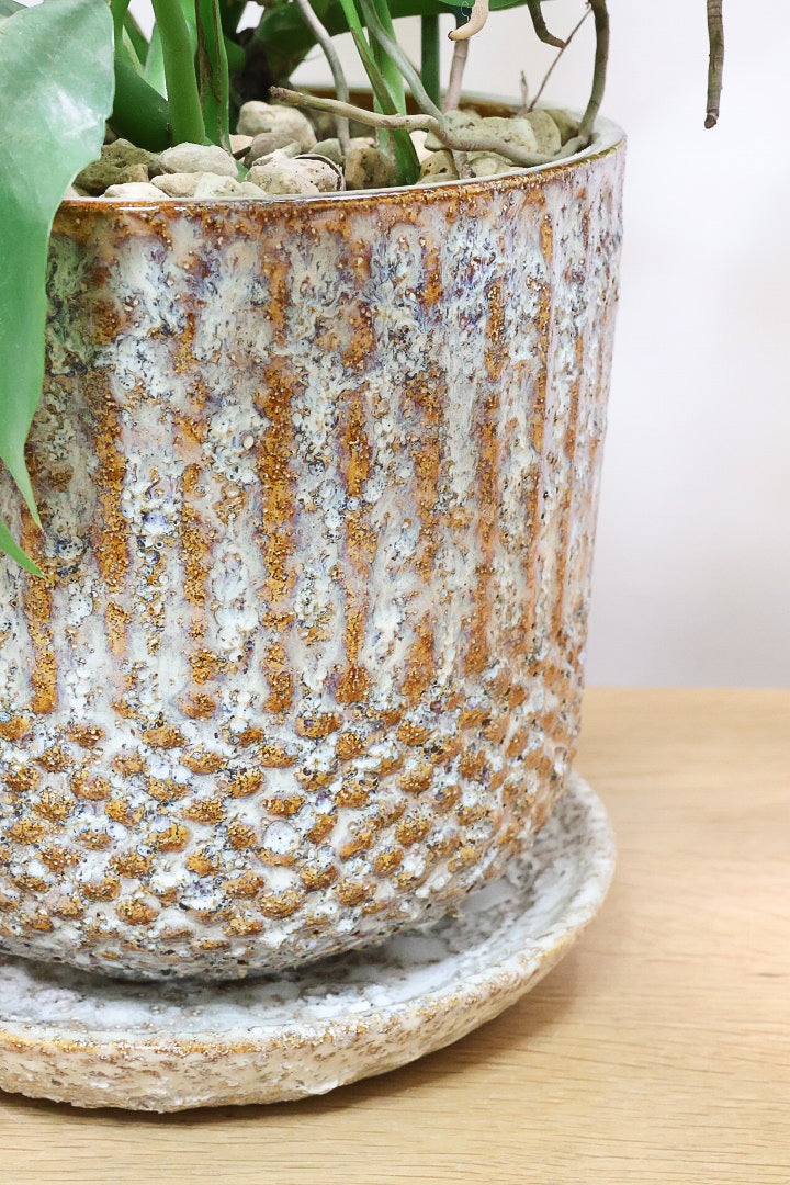 ゴツゴツした質感の陶器POTです。※自然の風合いを大切にするため、色ムラや歪み、欠けなどが多少あります。ご了承ください。