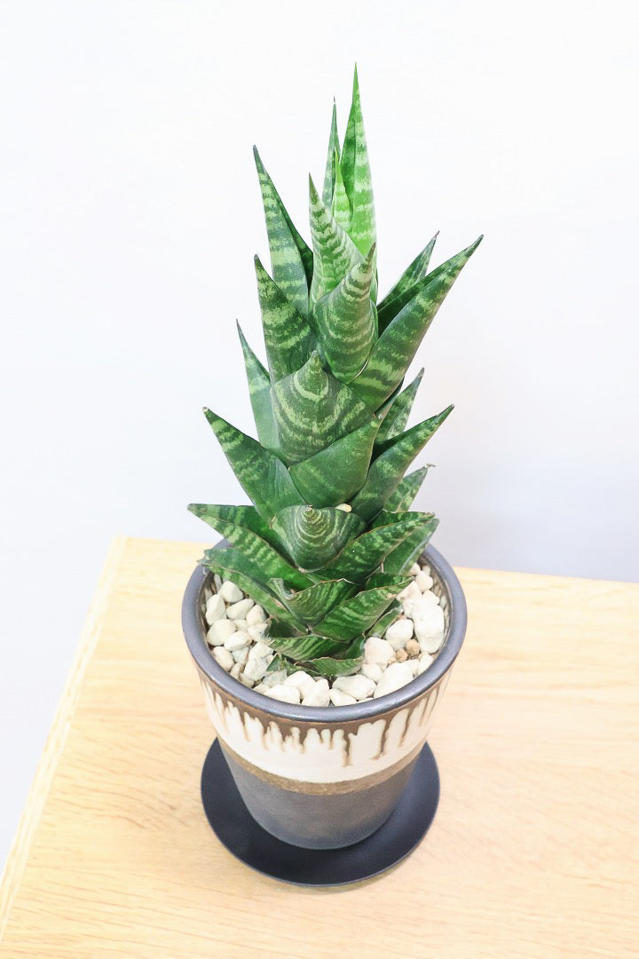 今回入荷のタイハイブリッドは数あるサンスベリアの中でも比較的に新しい品種です。ギュッと詰まったようなフォルムがとても素敵な逸品となります!
