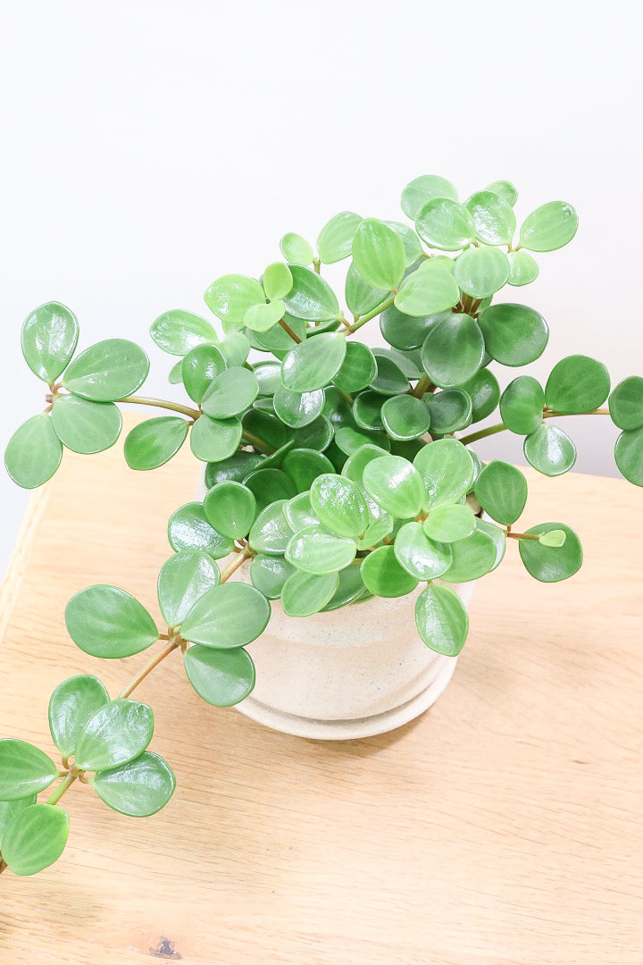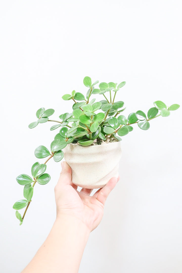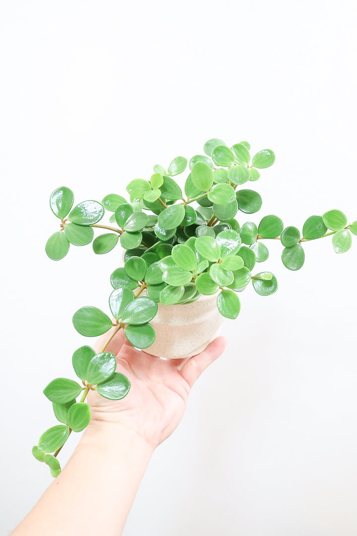 今回入荷のペペロミアは肉厚で丸い葉が特徴のホープという品種。ツル状にどんどんと生長していきますので、お部屋のインテリアとしてぴったりの植物です。