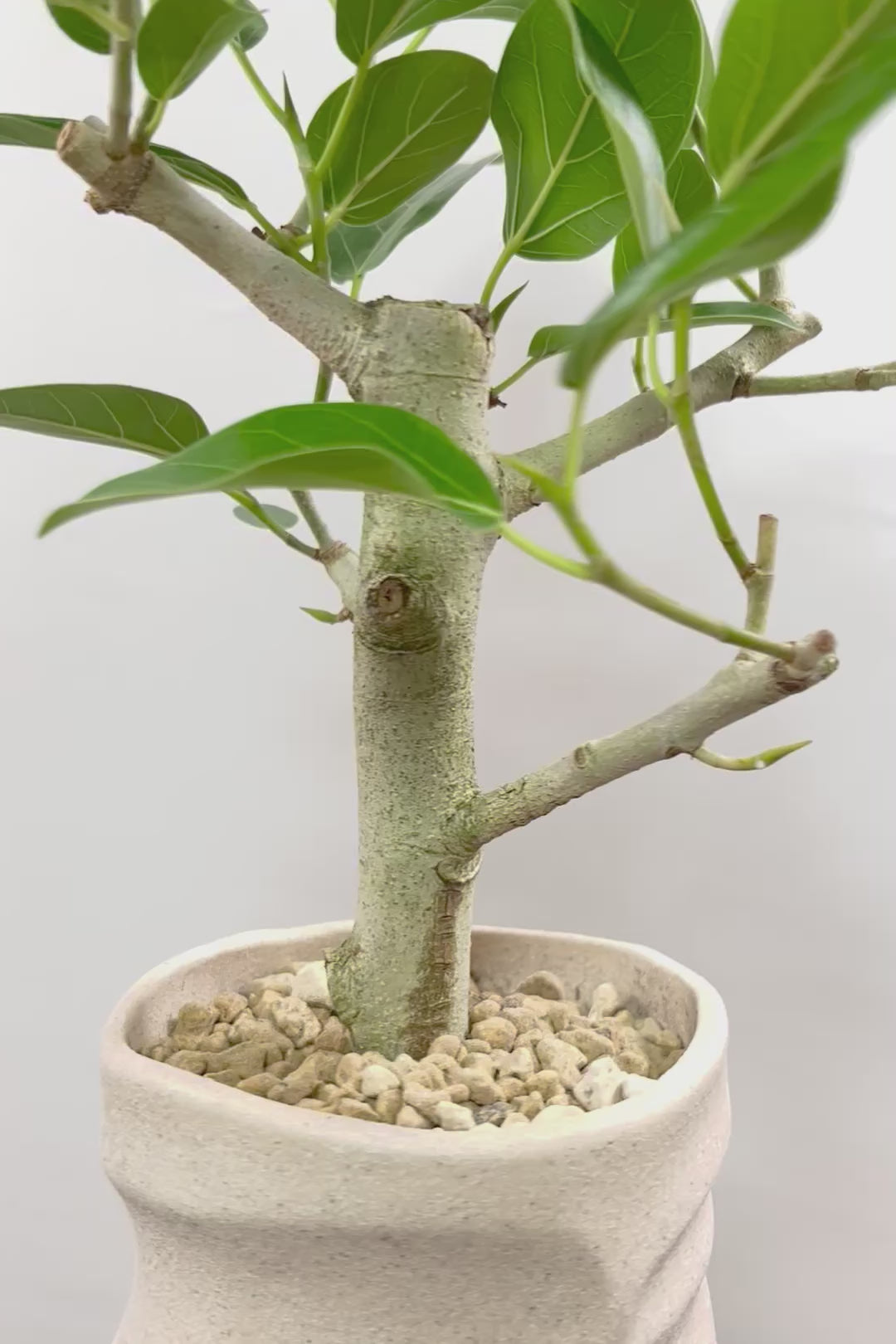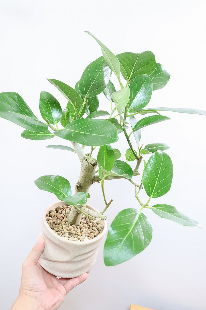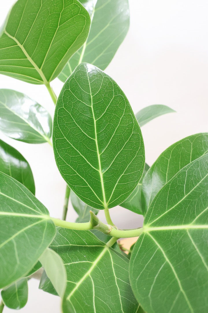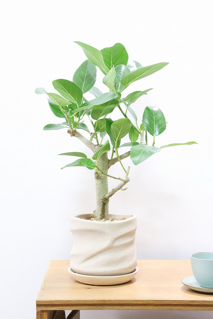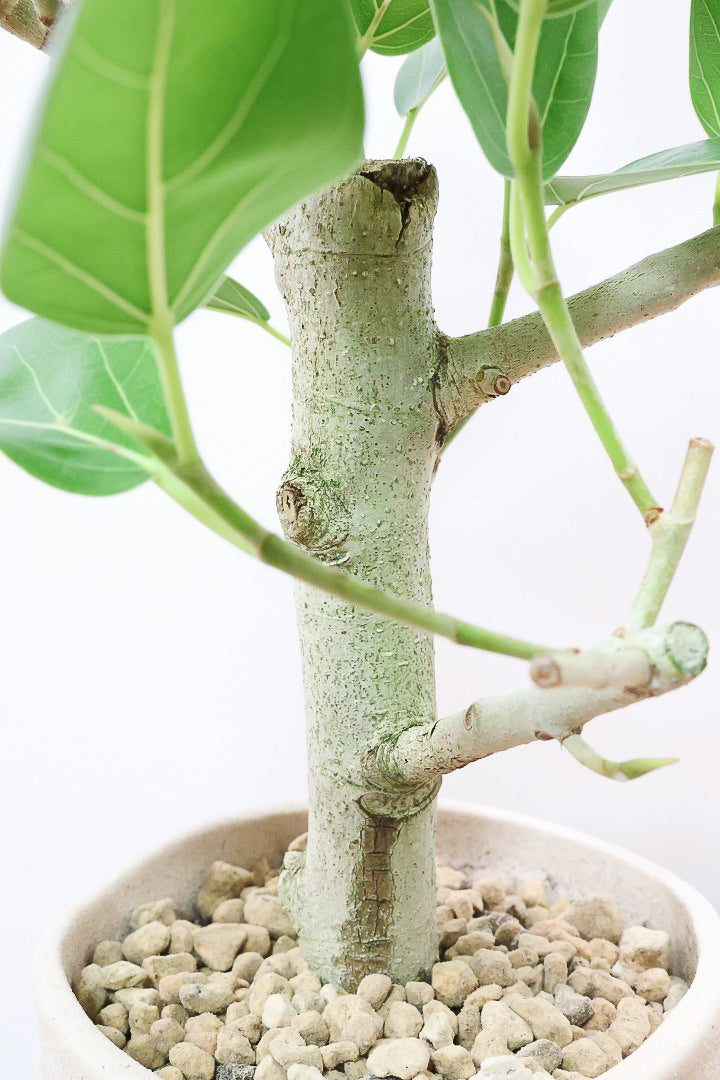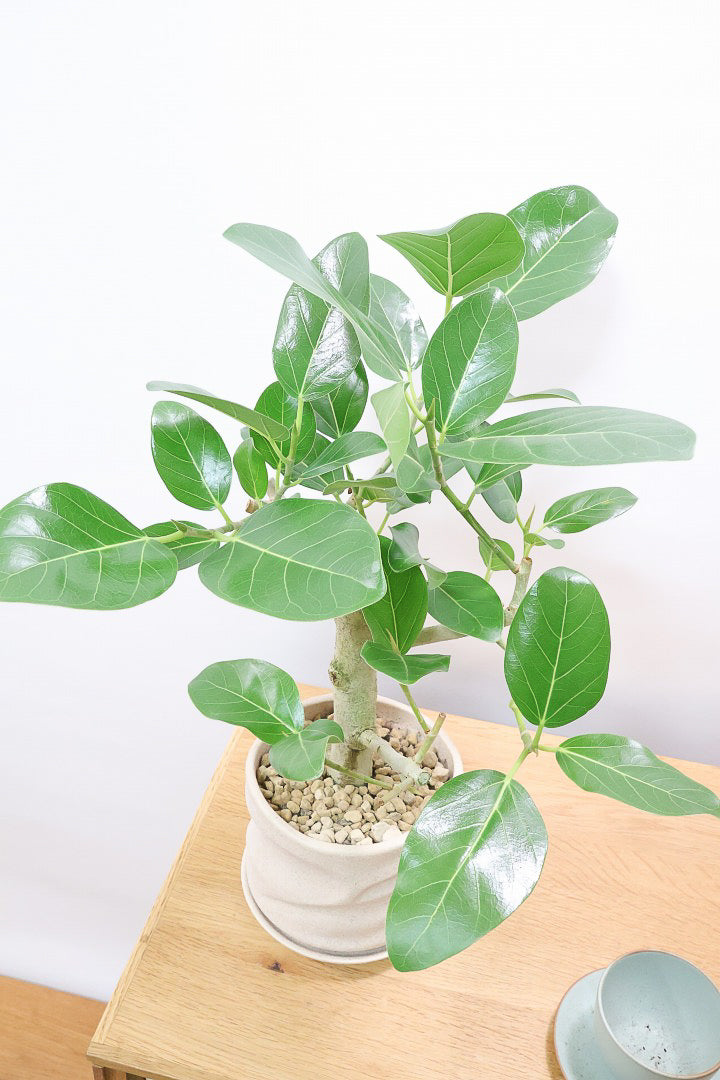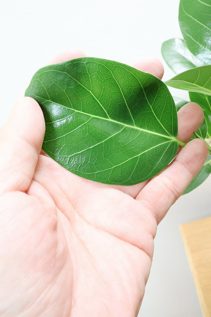 ゴムの木の仲間でとにかく丈夫で育てやすい!!葉っぱ一枚一枚がと大きいので存在感がとてもある植物です。葉の質感は肉厚でとてもしっかりとしています。長い時間をかけて生長する植物ですので、お部屋のインテリアとしてぴったりの植物です。