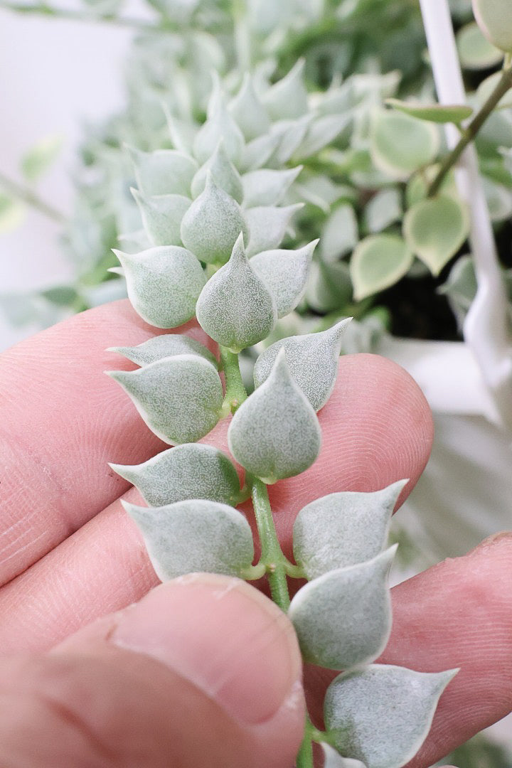 今回入荷のディスキディアは軽量のプラスチック製の吊鉢なので、手軽に吊さ出てグリーンをお楽しみいただけます!葉の中に水分を蓄える多肉植物なので性質はとても健常で育てやすい観葉植物です。葉っぱの一枚一枚がプニプニしていてとてもカワイイ♪水やりの回数も少なくてよく、育てやすい観葉植物なので、初心者の方にも安心♪