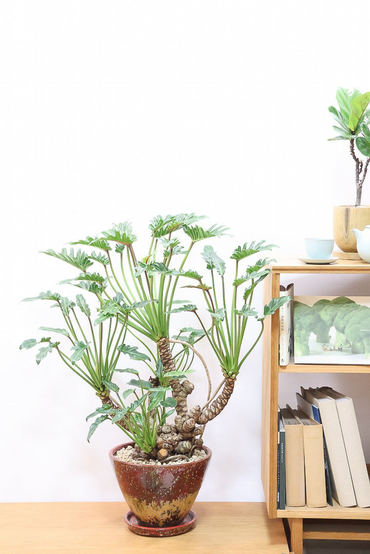 生長を見据えて選んだ陶器鉢は、3年程度植え替え不要。すぐに飾れる完成された姿でお届けします。