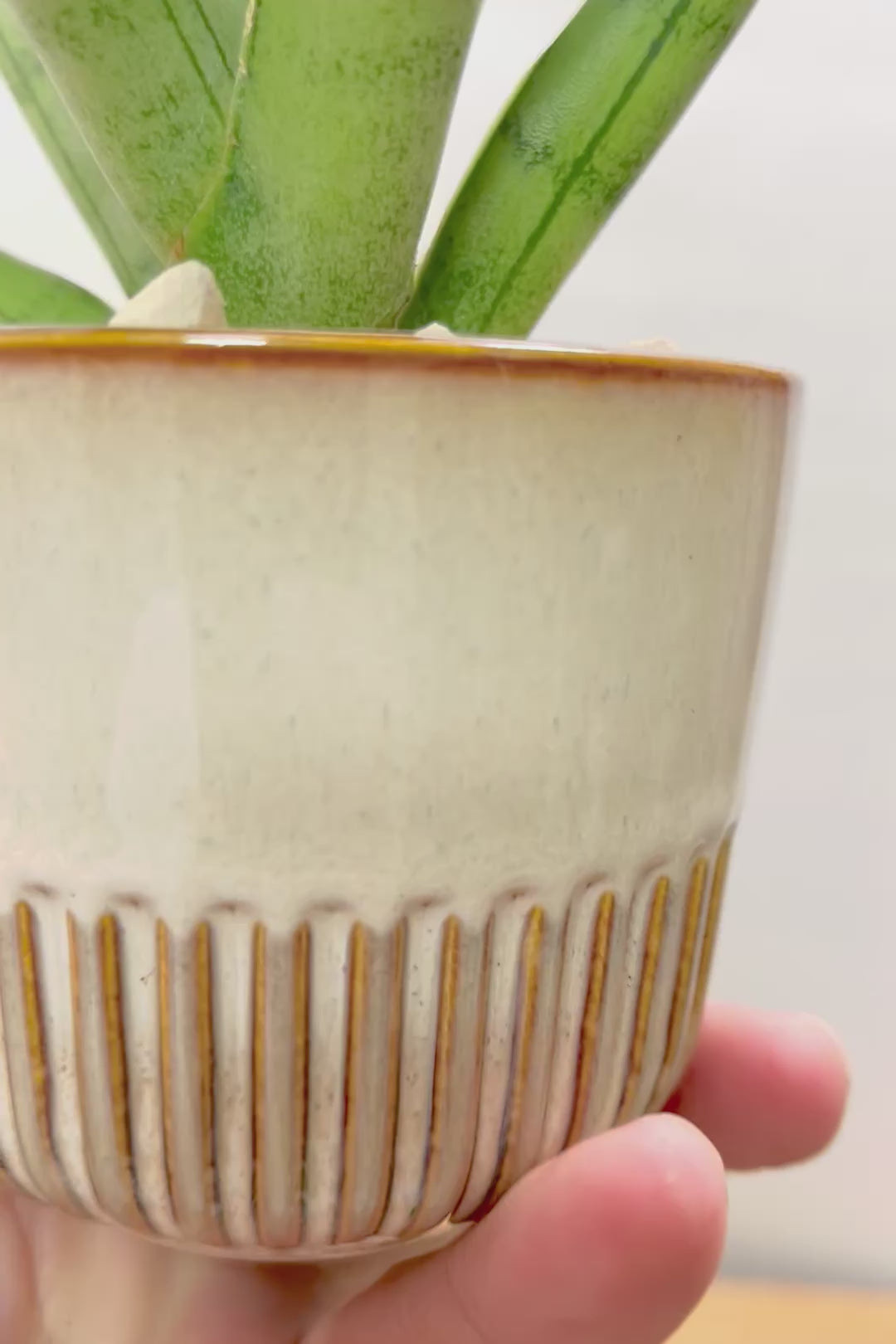 ゴツゴツした質感の陶器POTです。※自然の風合いを大切にするため、色ムラや歪み、欠けなどが多少あります。ご了承ください。