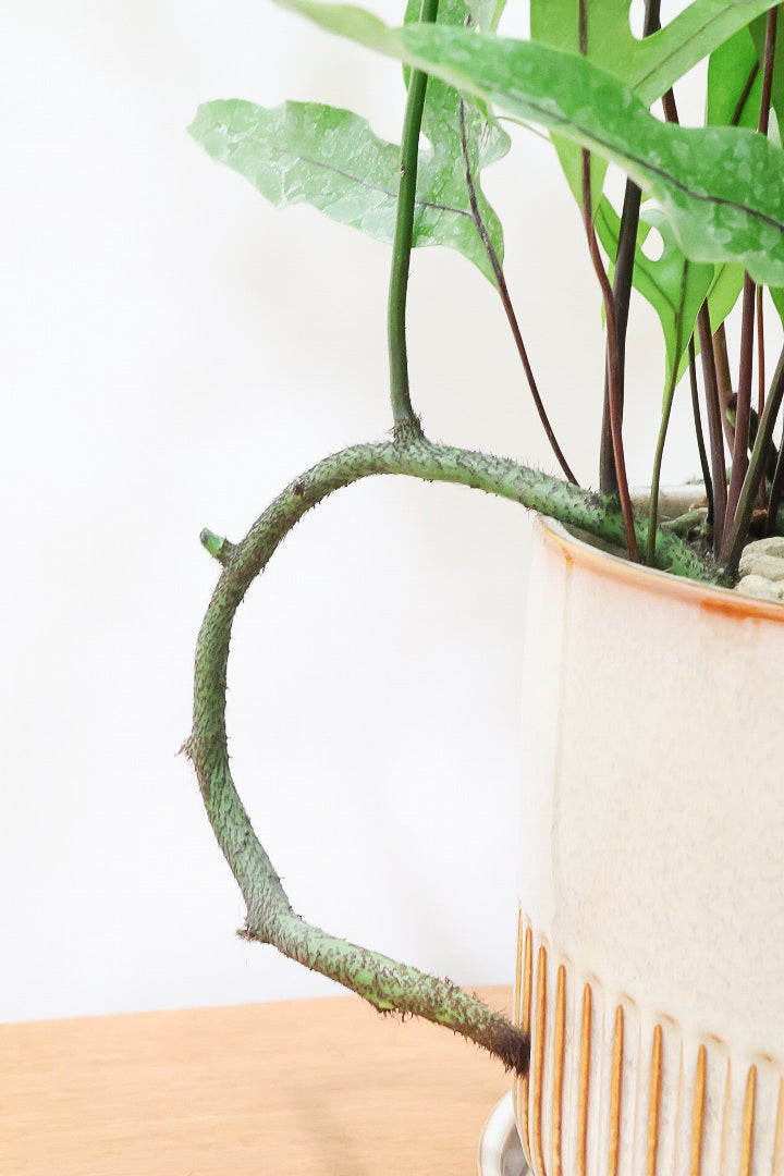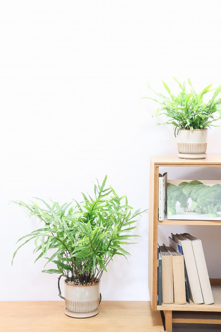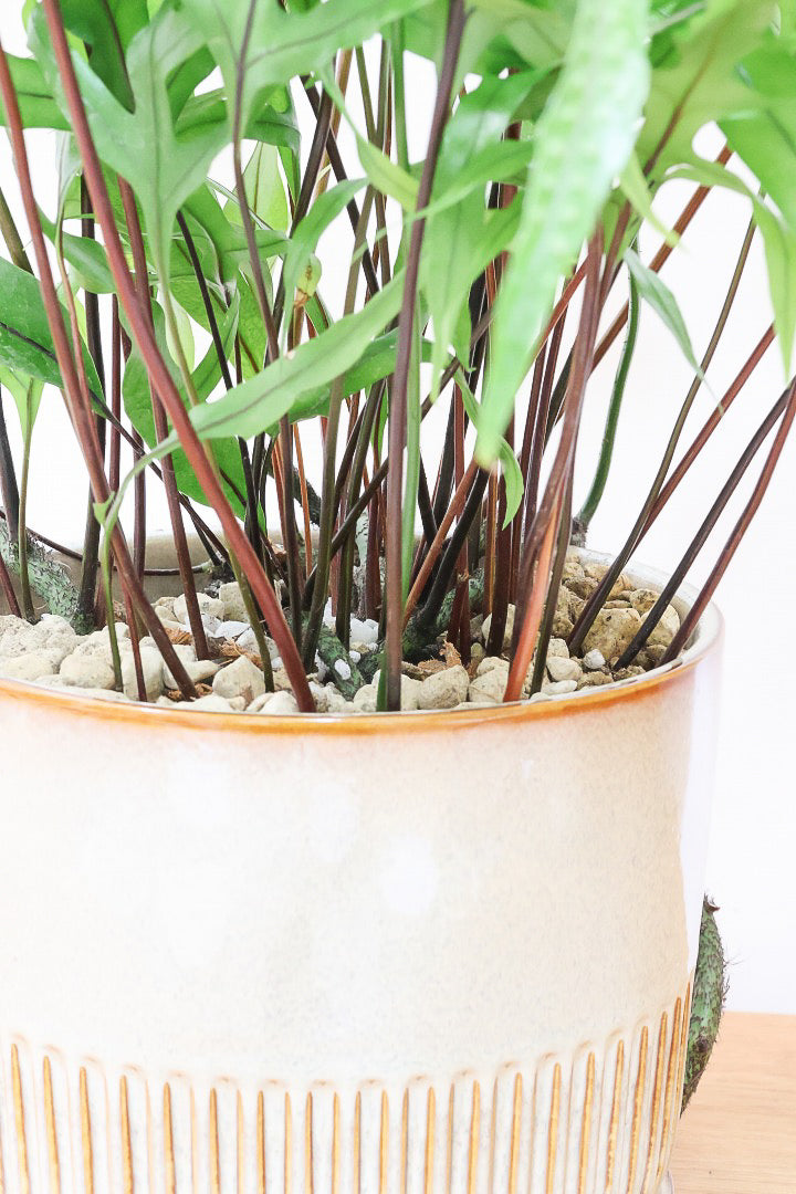 生長を見据えて選んだ陶器鉢は、3年程度植え替え不要。すぐに飾れる完成された姿でお届けします。