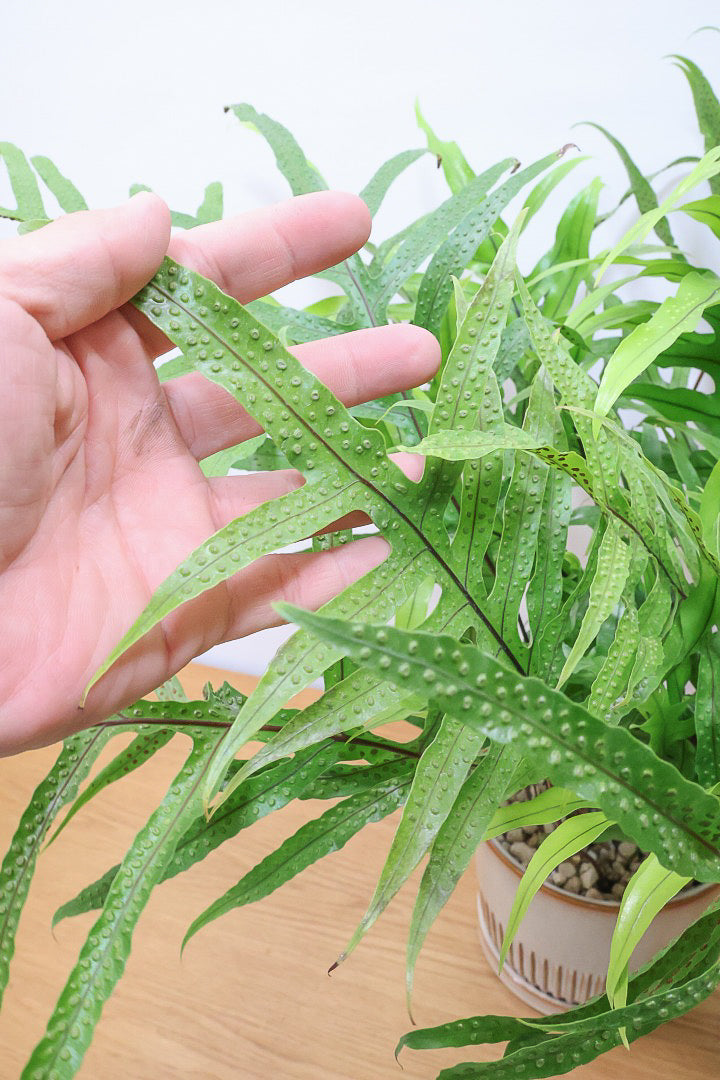 今回入荷のミクロソリウム ディベルシフォリウムは別名カンガルーファンとも呼ばれる植物。名前の由来はよくわかりませんが、かわいい葉っぱの観葉植物です。
