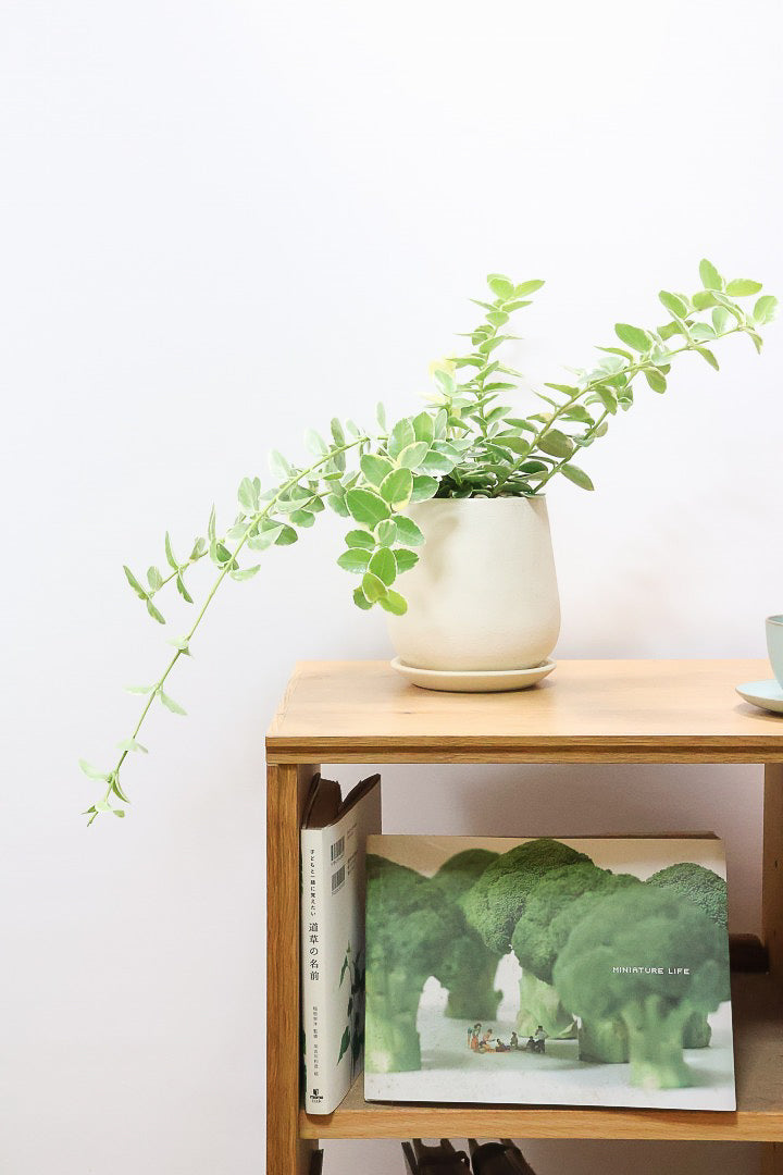 チェストの上など、さりげなく緑を感じられるサイズの観葉植物です。