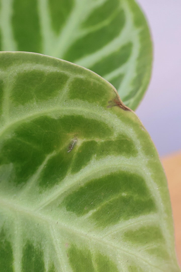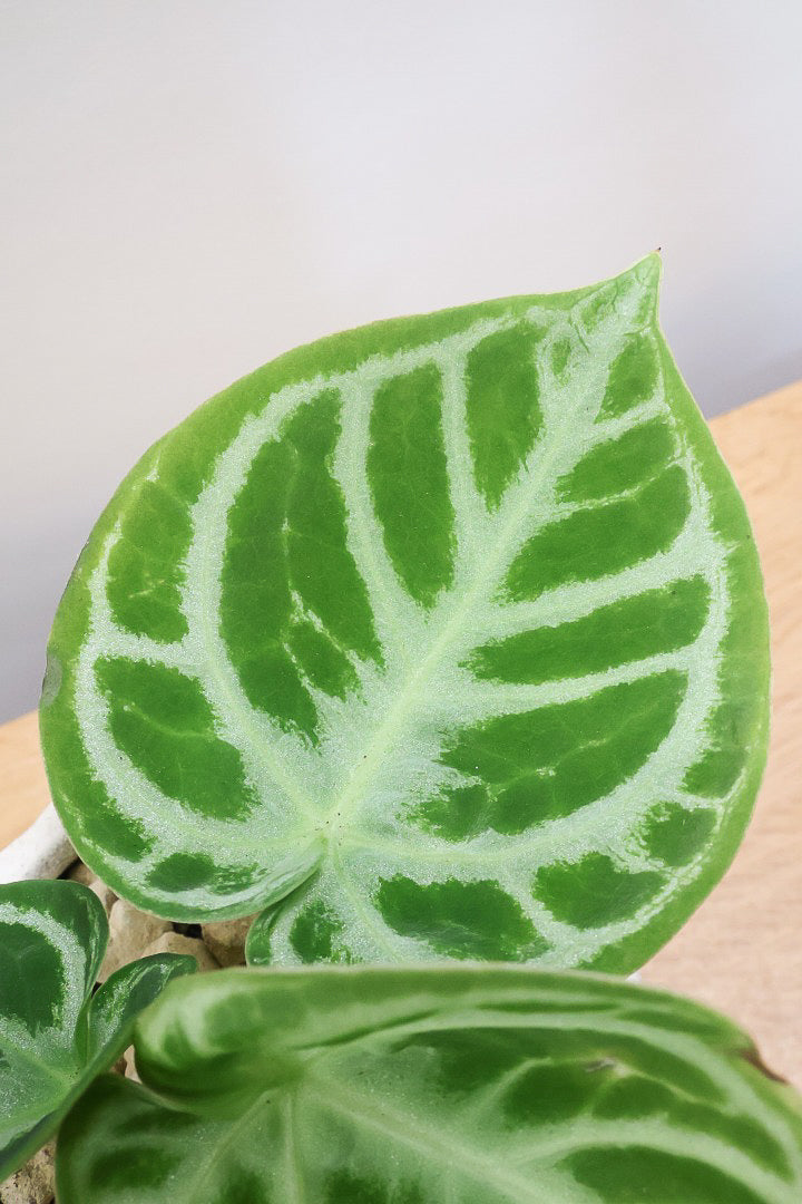 ドラヤキは葉の模様がとても美しく角度によってはあキラキラと光る人気の観葉植物です。存在感があるので人気の観葉植物。会社の開業や移転、お店の開店祝いなどにも人気です。葉はそれぞれ模様が異なるので新芽がでるたびに生長が楽しみな植物です。時間の流れとともにお部屋に馴染んでいく観葉植物です。