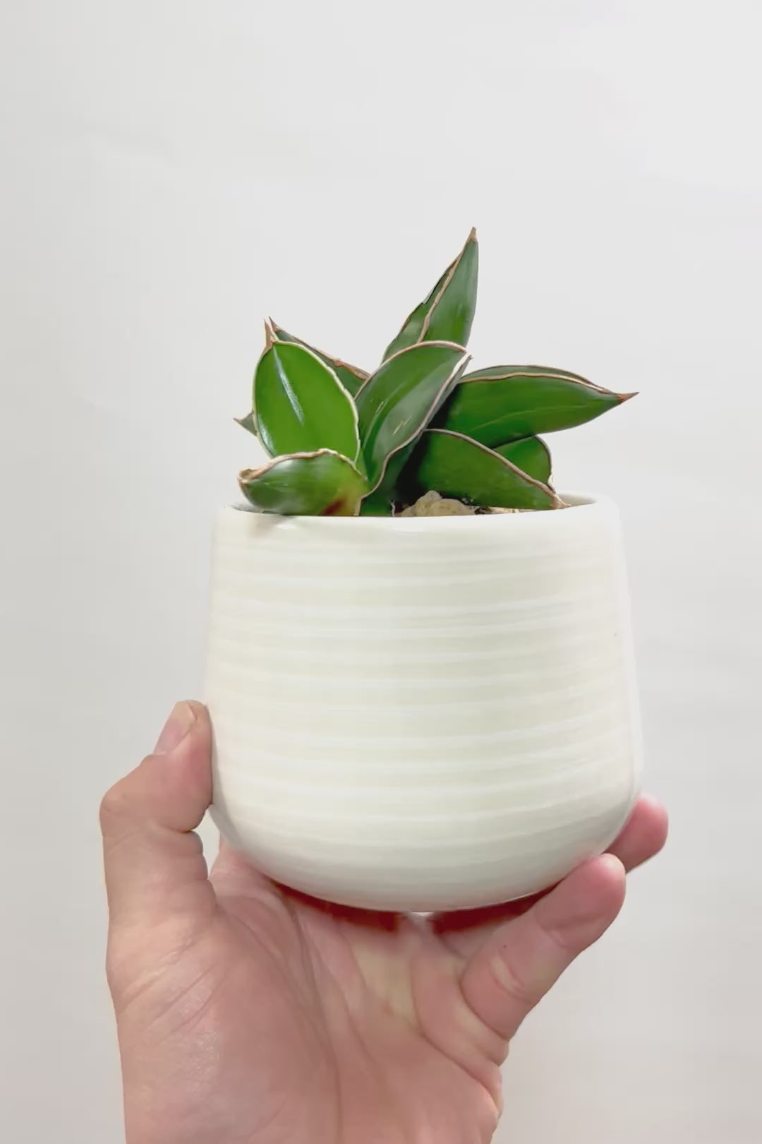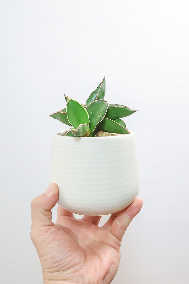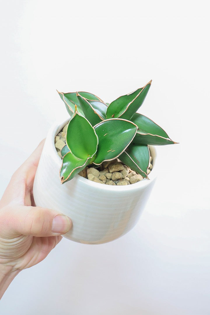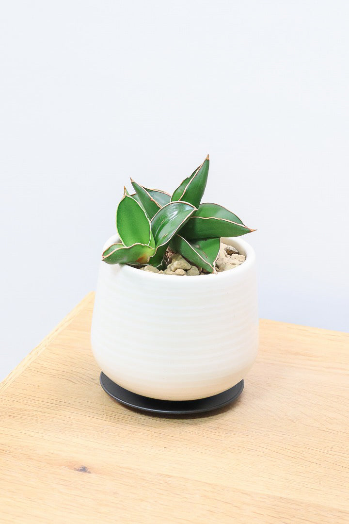 マイナスイオンを放出することで有名なサンスベリア♪葉の質感は多肉質でやや硬くとても丈夫です。新芽も出てくるので成長も楽しめます。生長すると小株がタケノコのようにニョキニョキ出てきて生長していきます。