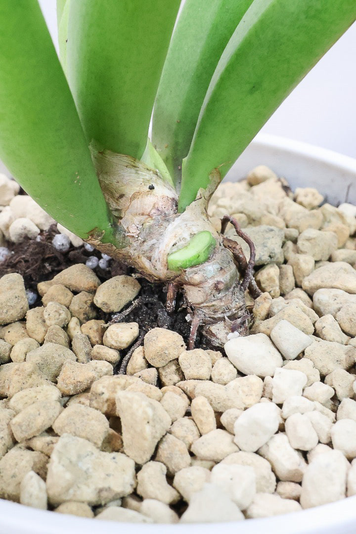 化粧石を敷くと土の乾き具合がわかりにくく、水やりのタイミングが難しくなります。APEGOでは化粧石を小袋に入れてお届けしますので、水やりに慣れてから敷いてください。