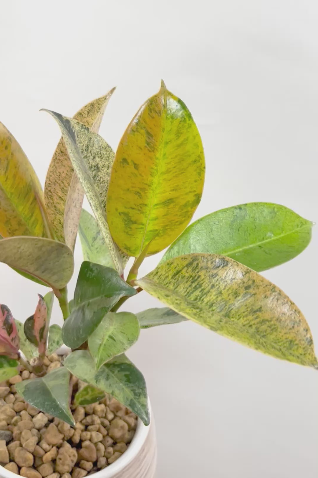 ジンはゴムの木の仲間でとにかく丈夫で育てやすい!!葉っぱ一枚一枚がと大きいので存在感がとてもある植物です。葉の質感は肉厚でとてもしっかりとしています。長い時間をかけて生長する植物ですので、お部屋のインテリアとしてぴったりの植物です。