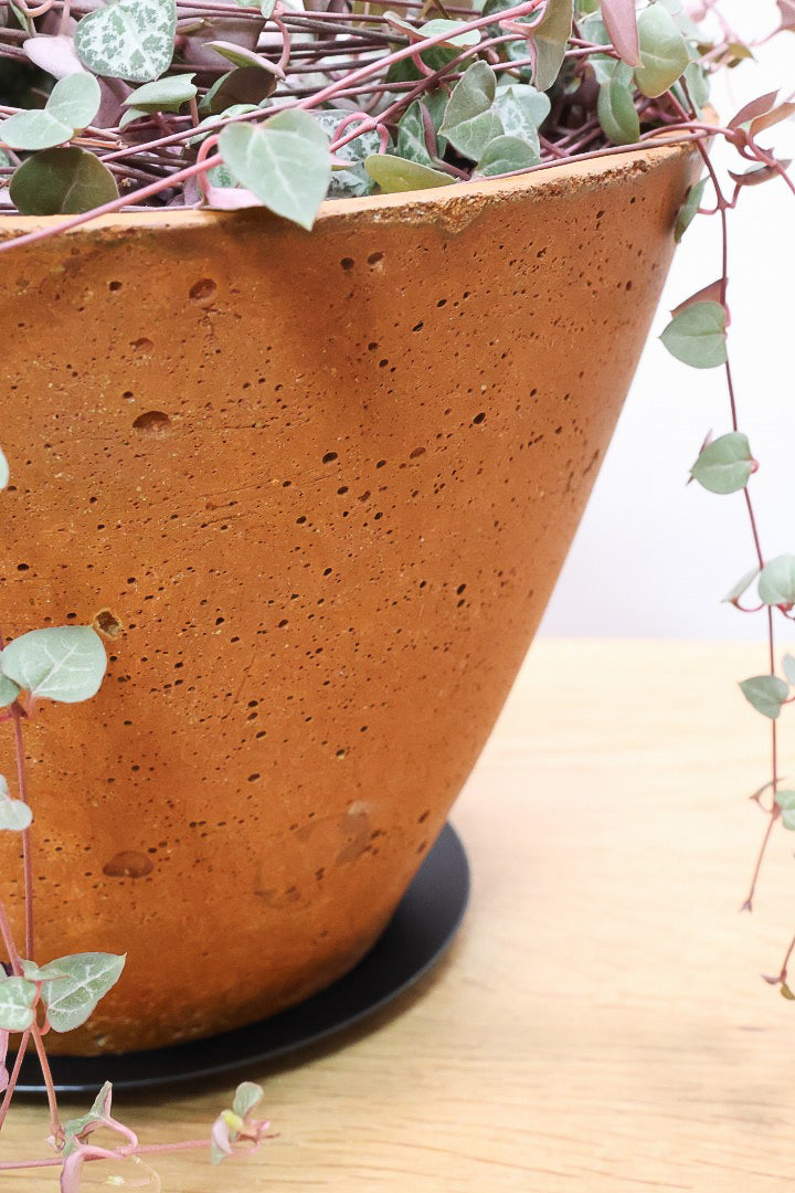 コンクリートの質感の陶器POTです※自然の風合いを大切にするため、色ムラや歪み、欠けなどが多少あります。ご了承ください。