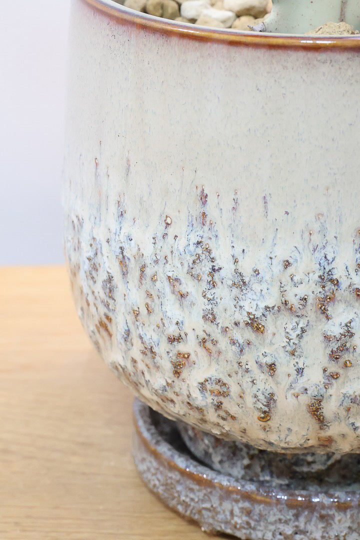 ゴツゴツした質感の陶器POTです。※自然の風合いを大切にするため、色ムラや歪み、欠けなどが多少あります。ご了承ください。