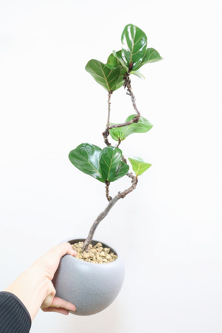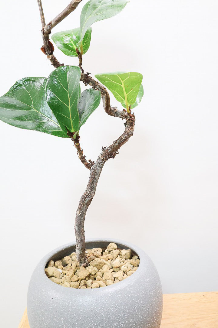 今回入荷のバンビーノはカシワバゴムの中でも小さめの葉が特徴の品種。しかも濃く落ち着いた葉が特徴です!幹は生産者さんがこだわったしっかりとした幹なので今後の生長も楽しみな一鉢です!