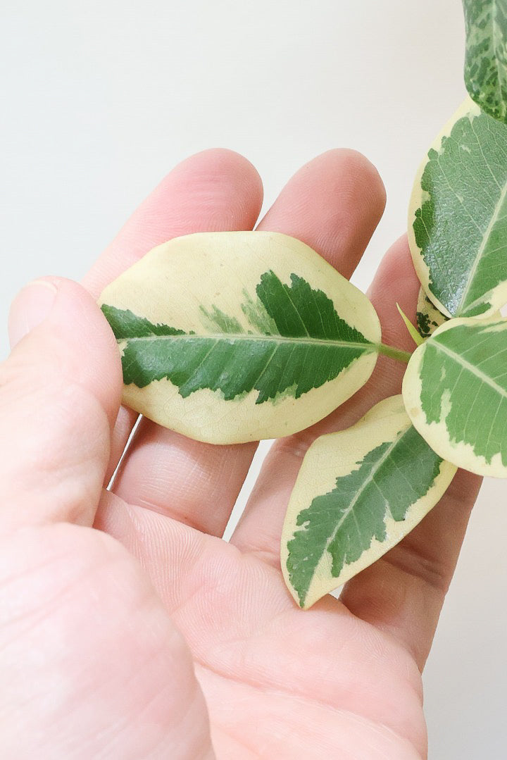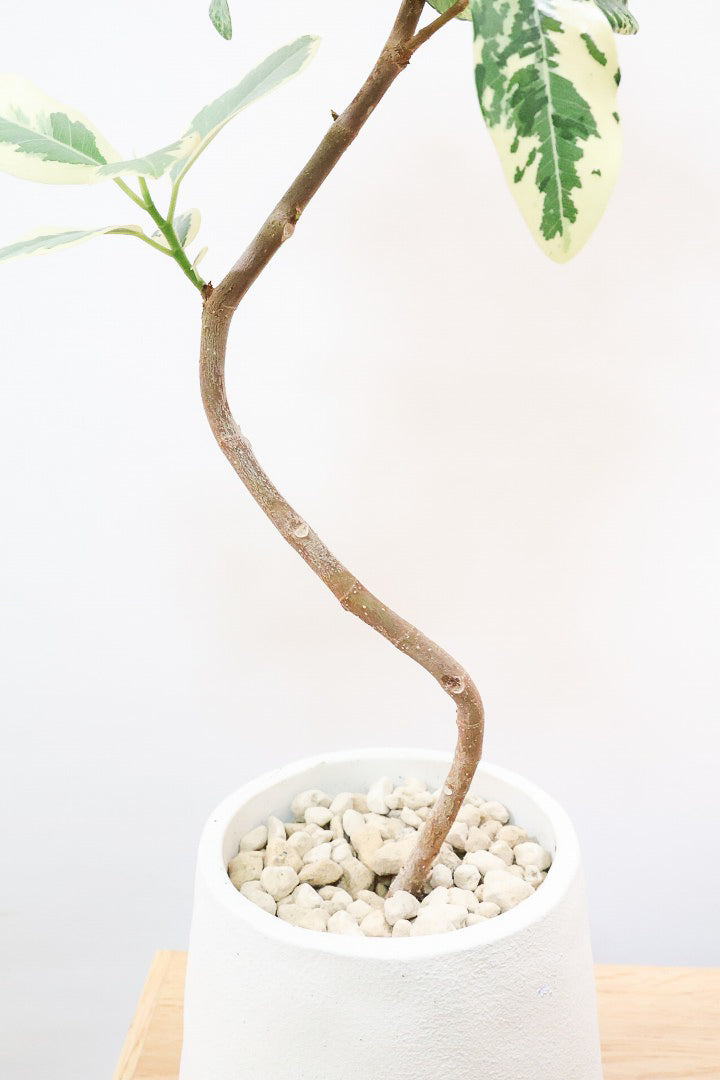 今回入荷のフランスゴムは希少な斑入りタイプ!しかも今回は希少な曲樹形!葉の模様は極上です!ぜひ手に取っていただきたい観葉植物です。