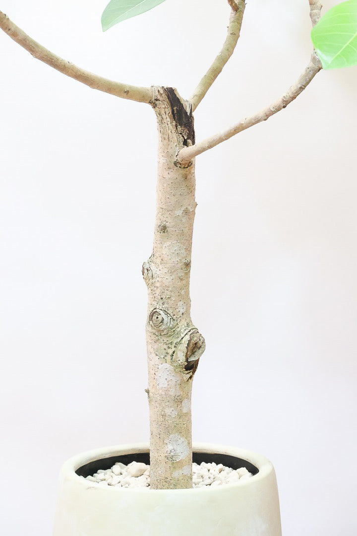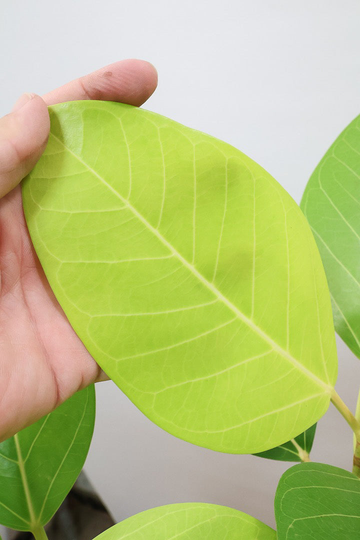 ゴムの木の仲間でとにかく丈夫で育てやすい!!葉っぱ一枚一枚がと大きいので存在感がとてもある植物です。葉の質感は肉厚でとてもしっかりとしています。長い時間をかけて生長する植物ですので、お部屋のインテリアとしてぴったりの植物です。