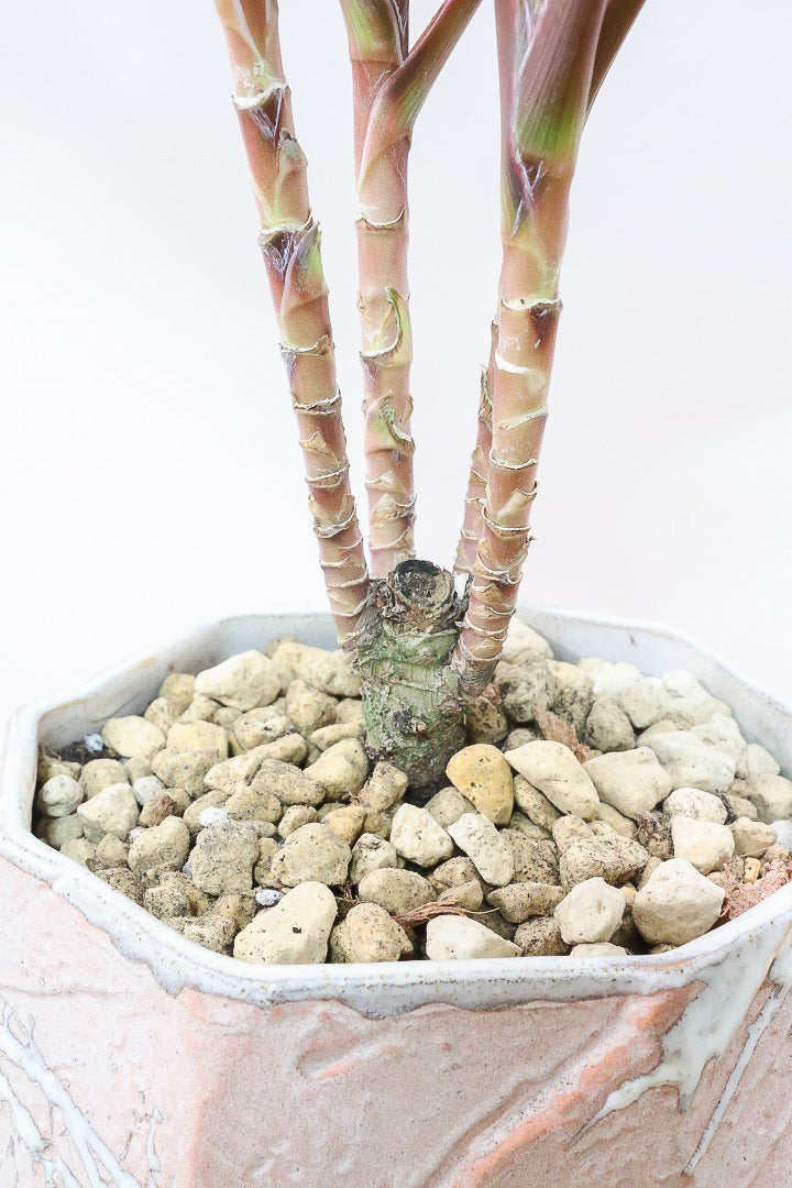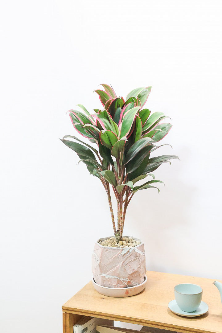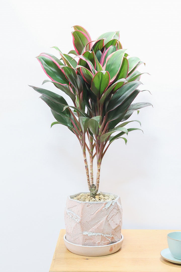 カラフルな葉っぱが存在感を示すコルジリネ。性質はとても健常で育てやすい観葉植物です。スタイリッシュでボリュームのある樹形なので、生長が楽しみな植物です。
