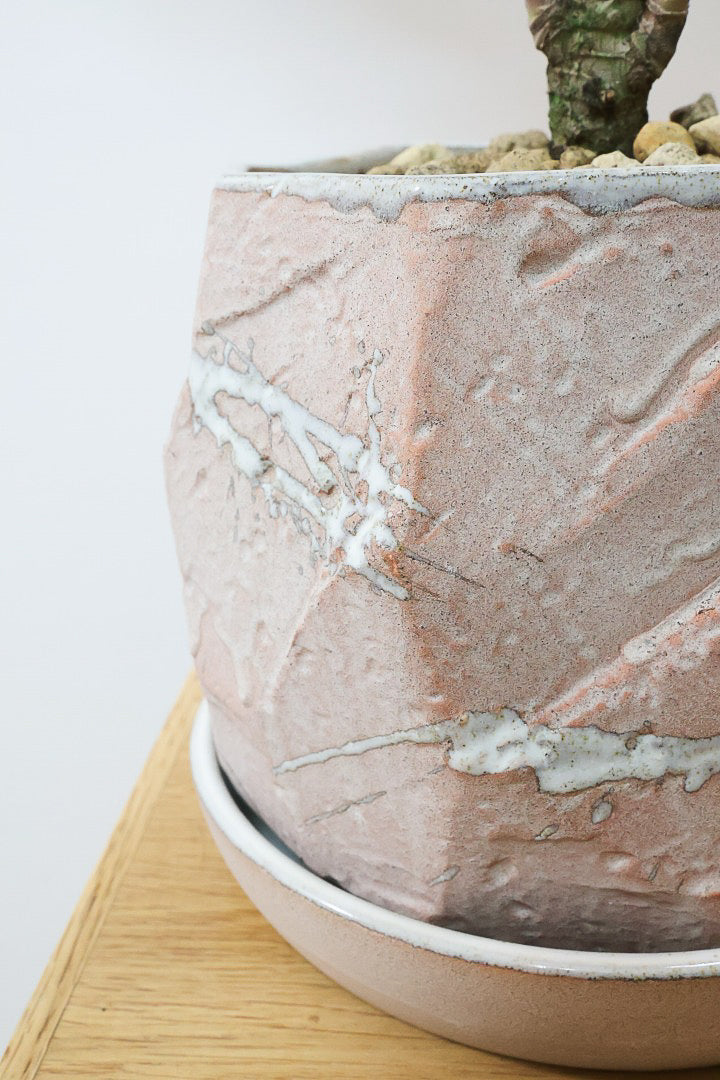 ゴツゴツした質感の陶器POTです。※自然の風合いを大切にするため、色ムラや歪み、欠けなどが多少あります。ご了承ください。