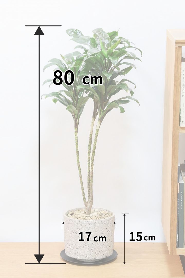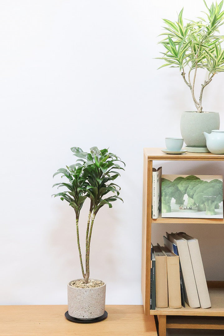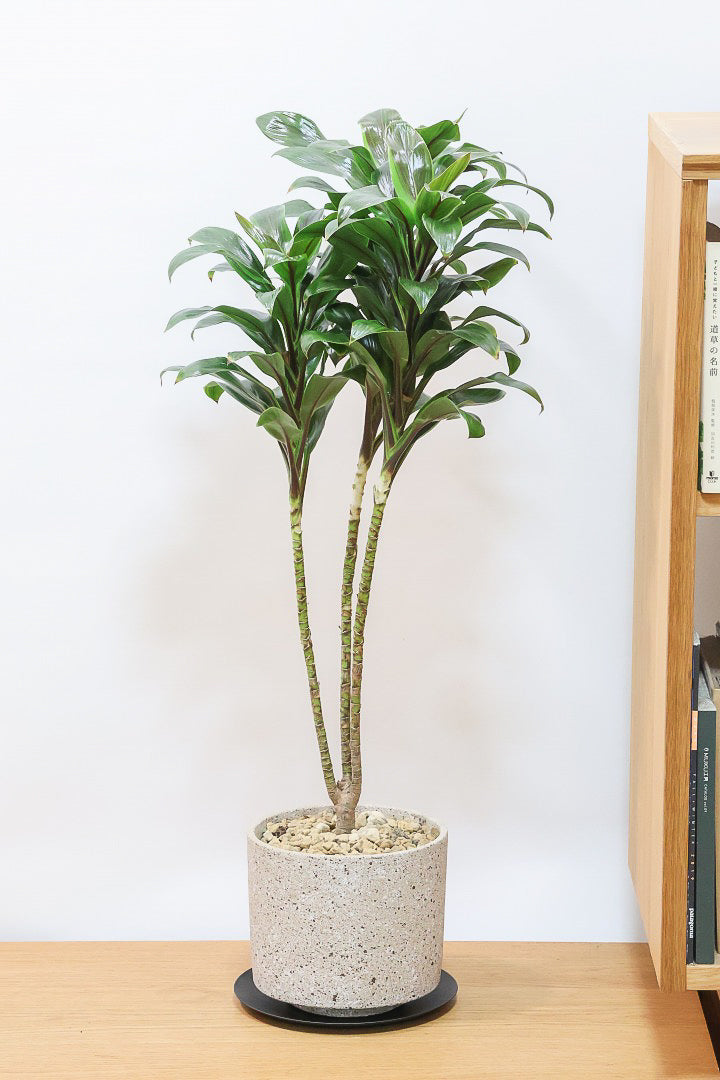床置きタイプでテレビ台の横などのスペースで存在感を引き立てるサイズの観葉植物です。