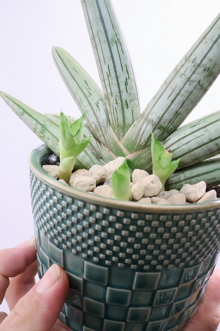 【サンスベリア ホワイトボンセレンシス】子株がめっちゃ出てます!静岡県の生産者さんのこだわり品種!ボンセレンシスの中でもホワイトは希少ですよ!