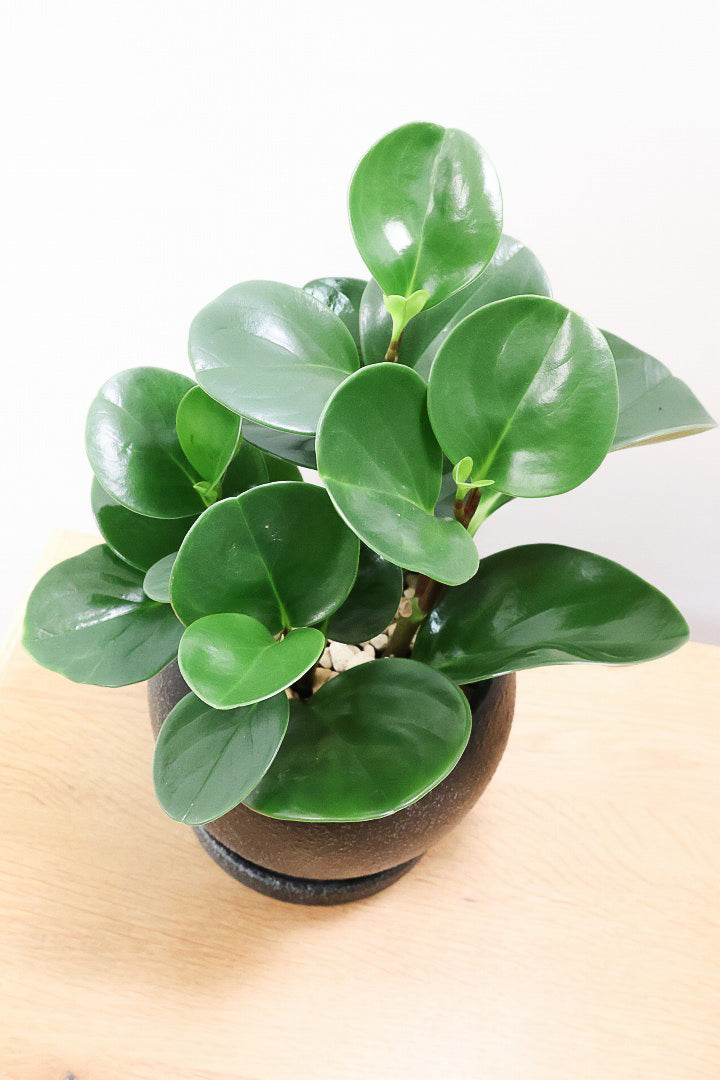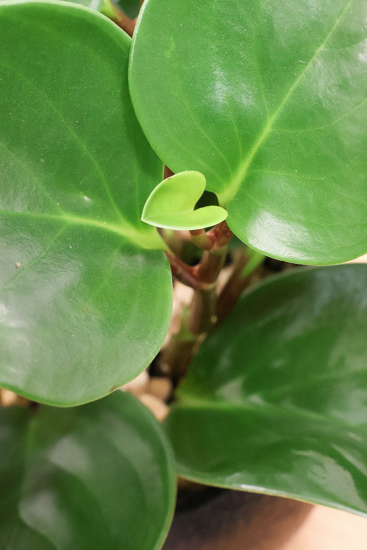 かわいい葉が人気のぺぺロミア♪葉っぱがとてもキュート♪新芽はかわいいライム色でとてもきれいです♪ツル状にどんどん新芽を出して生長しますので、生長の過程が楽しめるペペロミア。お部屋のインテリアとしてぴったりの植物です。