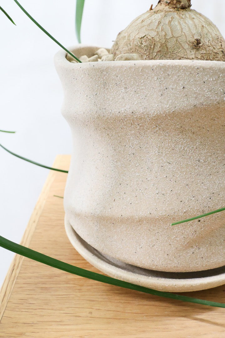 コンクリートの質感の陶器POTです※自然の風合いを大切にするため、色ムラや歪み、欠けなどが多少あります。ご了承ください。