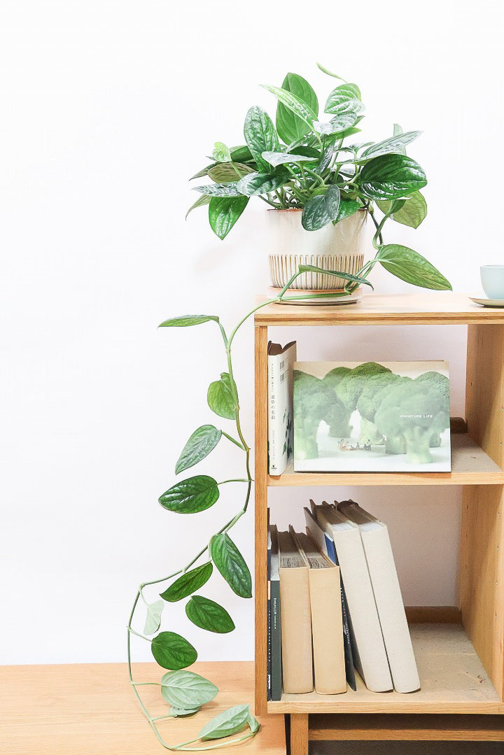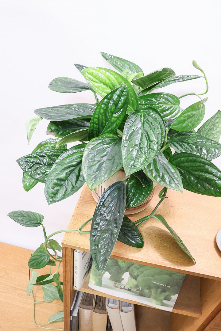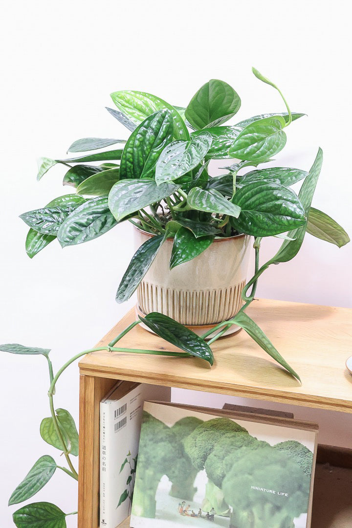 チェストの上など、さりげなく緑を感じられるサイズの観葉植物です。