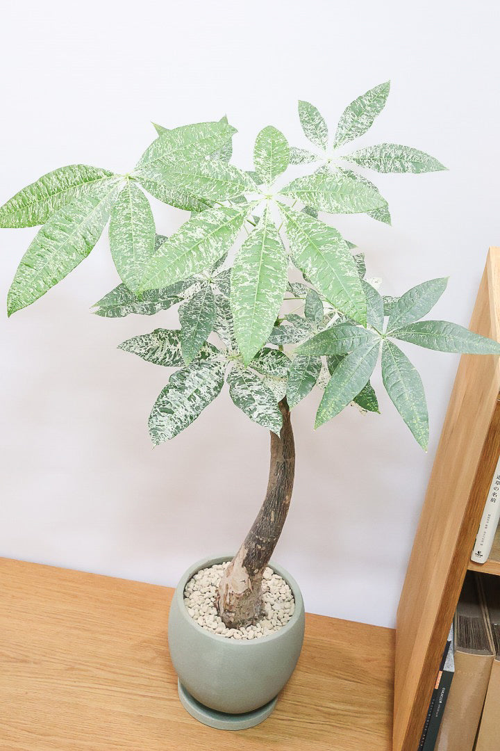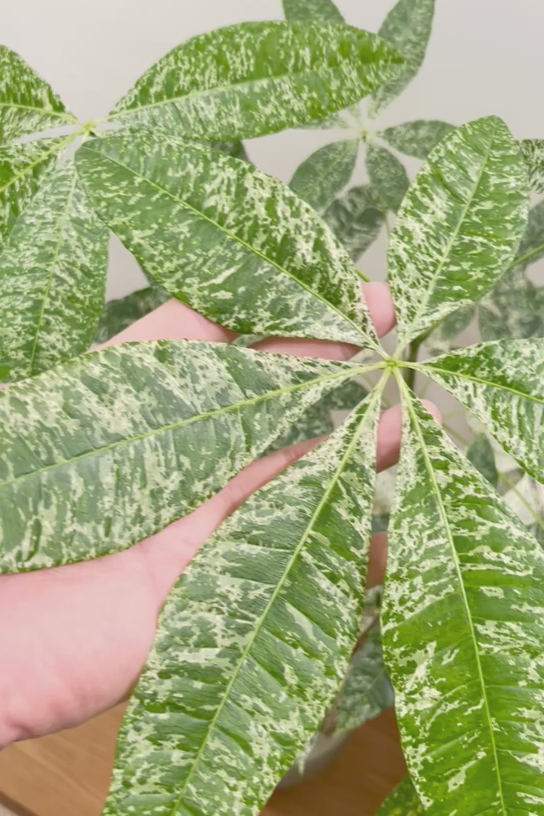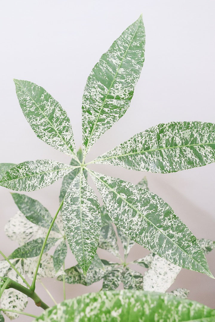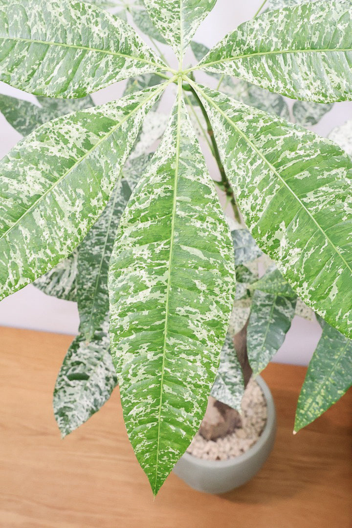 今回入荷のミルキーウェイはとてもいお手頃なサイズ!葉数も多いので見た目にも存在感がありますよ!ミルキーウェイはパキラの中でも葉のコントラストが美しい人気品種です。日の当たり具合によって斑の入り方が異なりますので生長して新葉が出るたびにワクワクします!