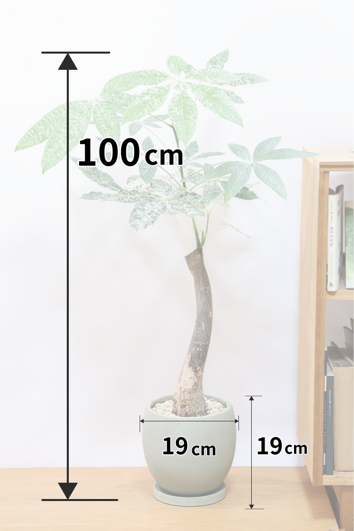 床置きタイプでテレビ台の横などのスペースで存在感を引き立てるサイズの観葉植物です。