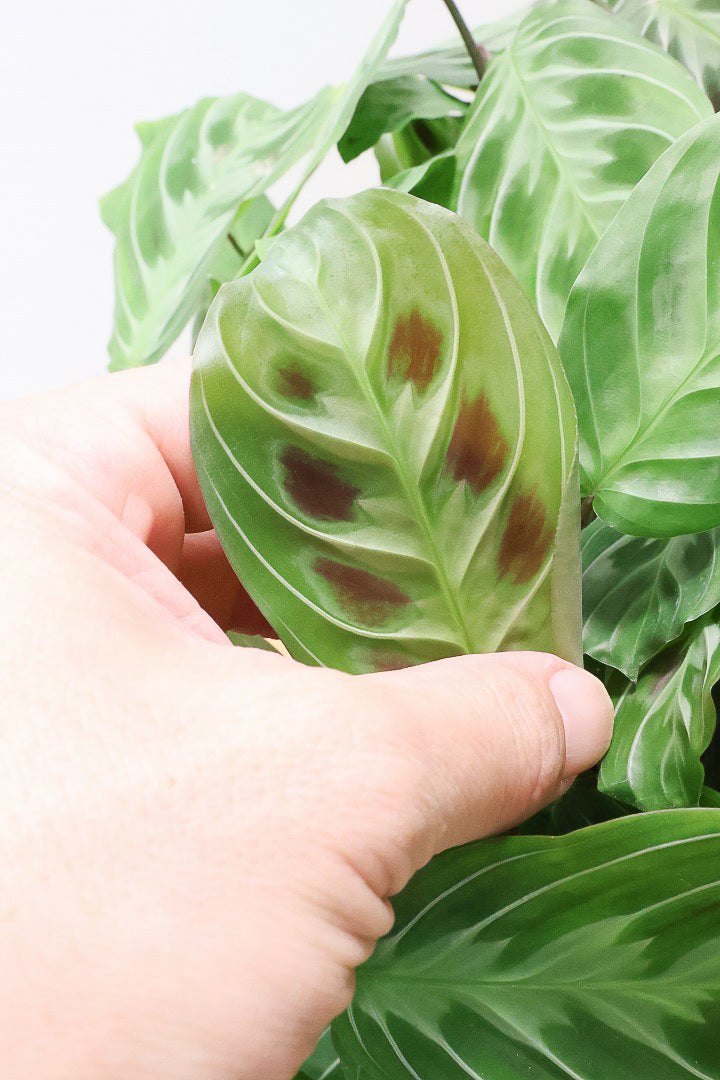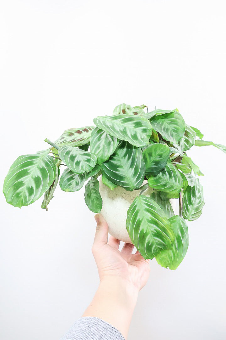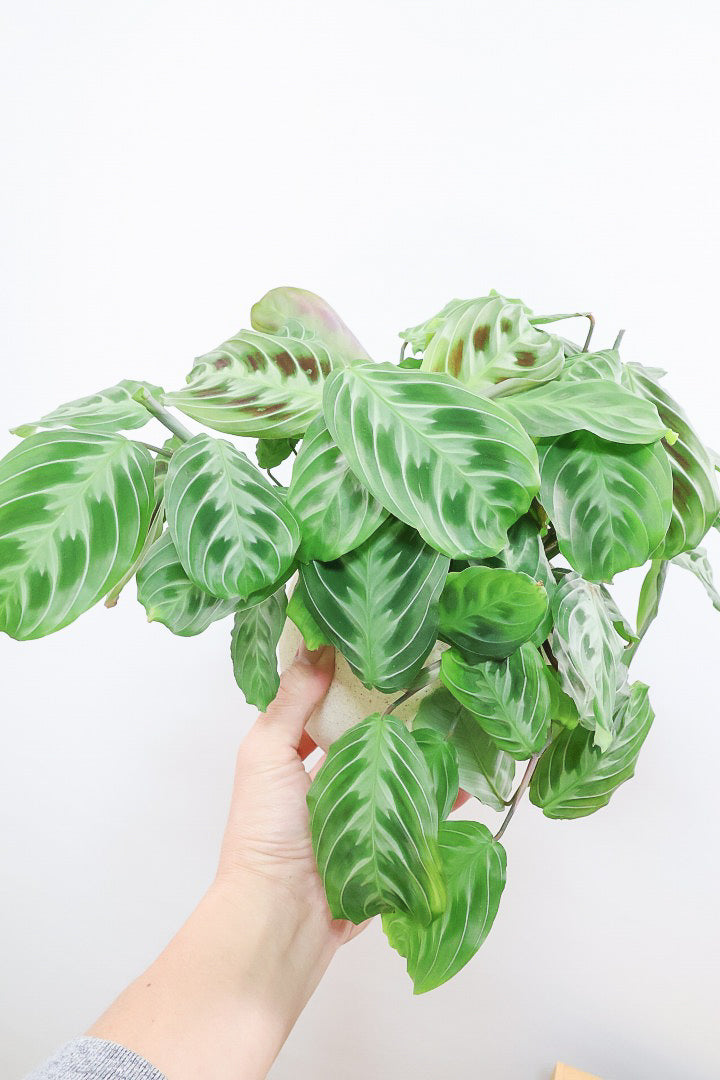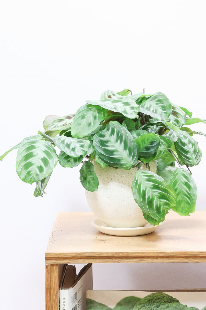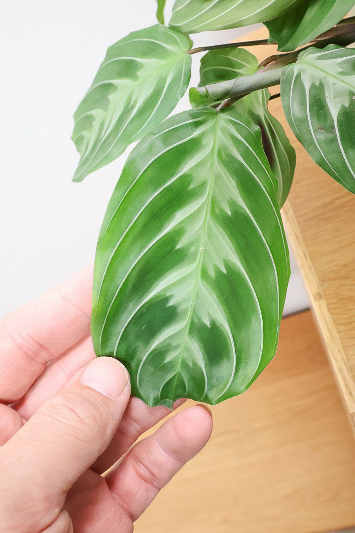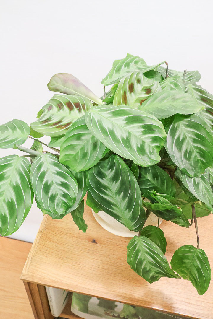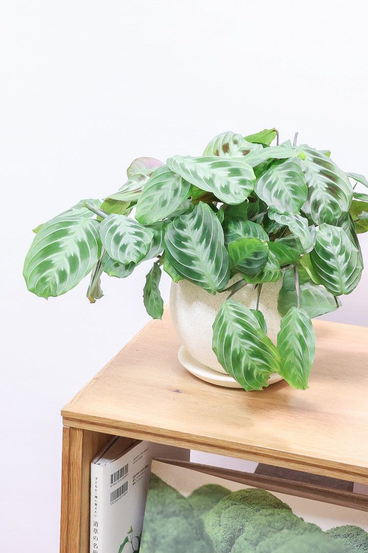 マランタは葉の模様がとても美しく人気の観葉植物です。ツル性に生長しますので、長くなった場合はカットして切り花としても楽しんでいただけます!時間の流れとともにお部屋に馴染んでいく観葉植物です。