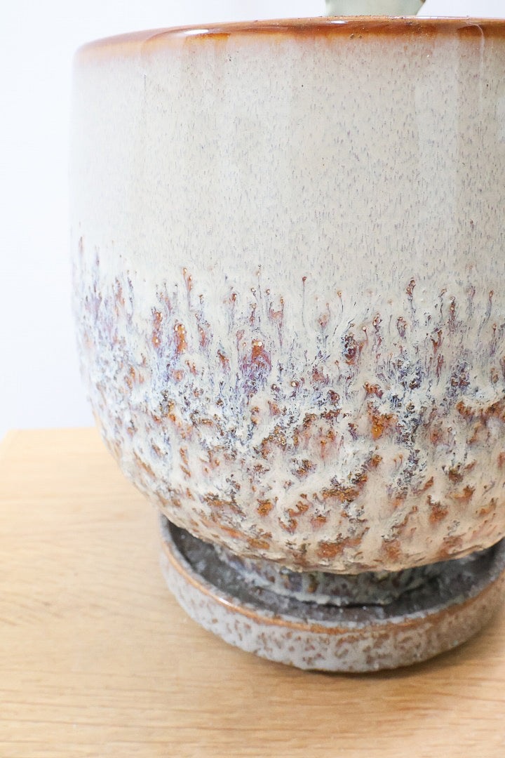 ゴツゴツした質感の陶器POTです。※自然の風合いを大切にするため、色ムラや歪み、欠けなどが多少あります。ご了承ください。