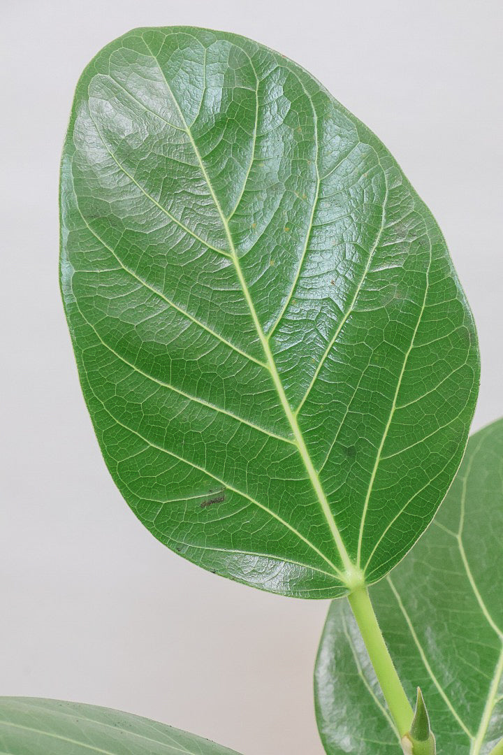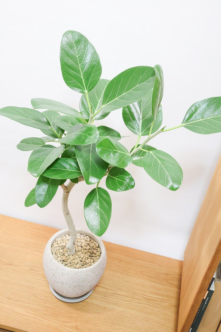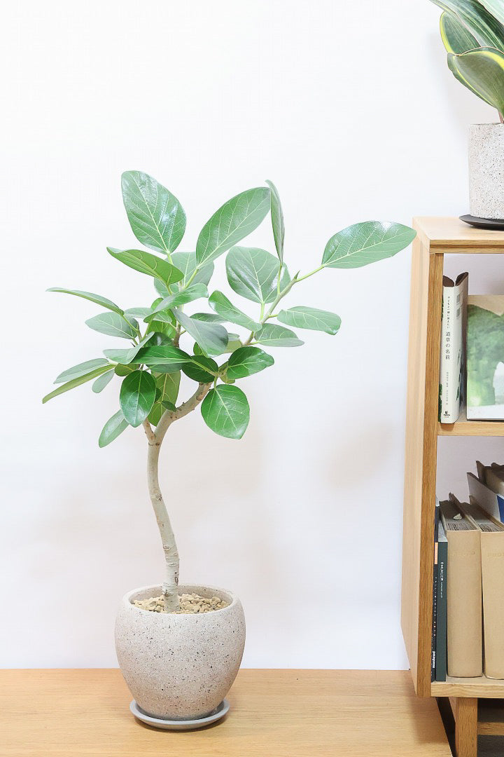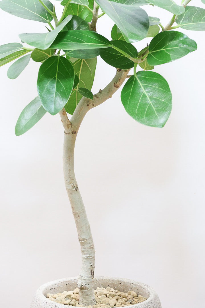 ゴムの木の仲間でとにかく丈夫で育てやすい!!葉っぱ一枚一枚がと大きいので存在感がとてもある植物です。葉の質感は肉厚でとてもしっかりとしています。長い時間をかけて生長する植物ですので、お部屋のインテリアとしてぴったりの植物です。