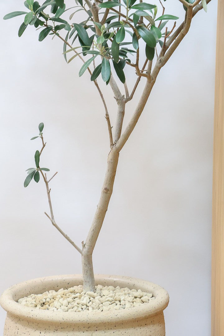 今回入荷のオリーブはオリーブの名産地として有名な小豆島の日本でも名高い生産者さんが長年の手間と時間をかけた逸品!他にはない樹形ですので、是非とも玄関ポーチなどにおすすめします!