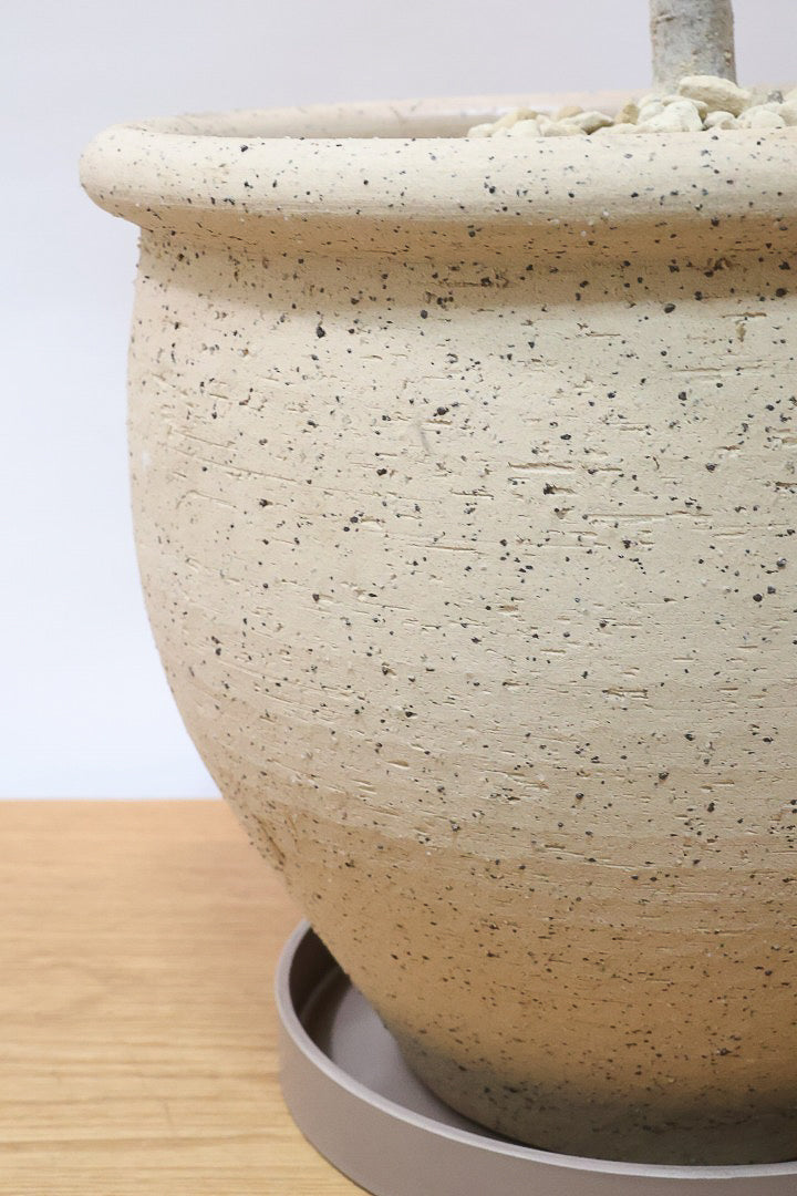 生長を見据えて選んだ陶器鉢は、3年程度植え替え不要。すぐに飾れる完成された姿でお届けします。